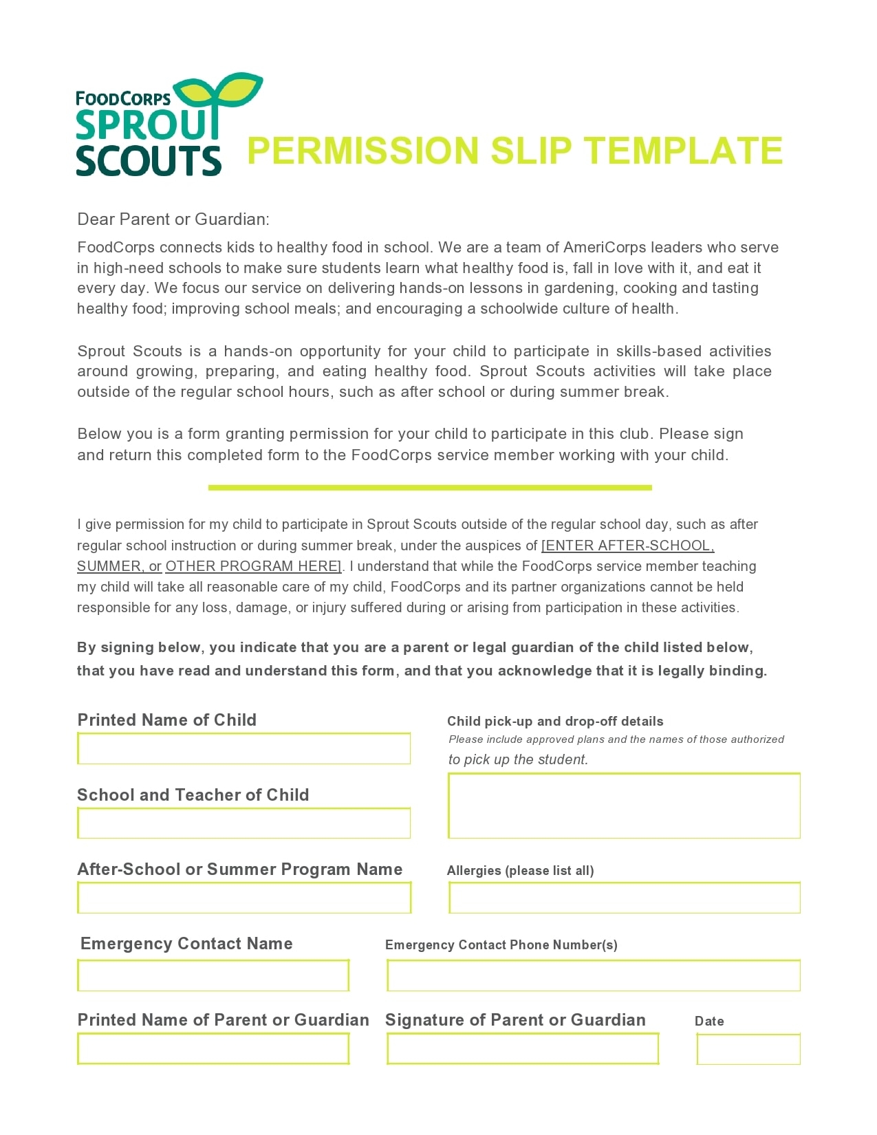30 Permission Slip Templates Field Trip Scouts Generic