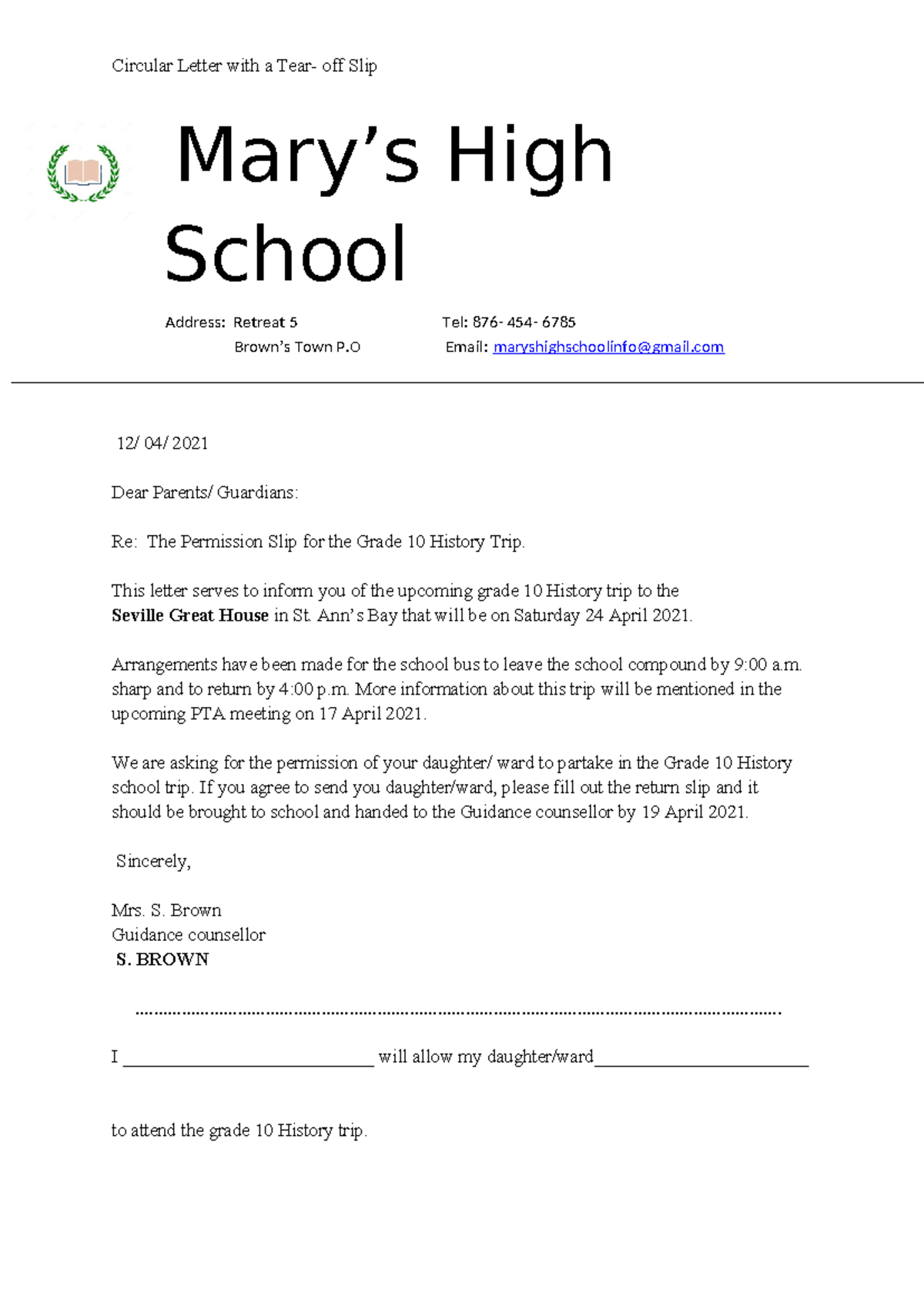 Letter With Tear Off Slip Template