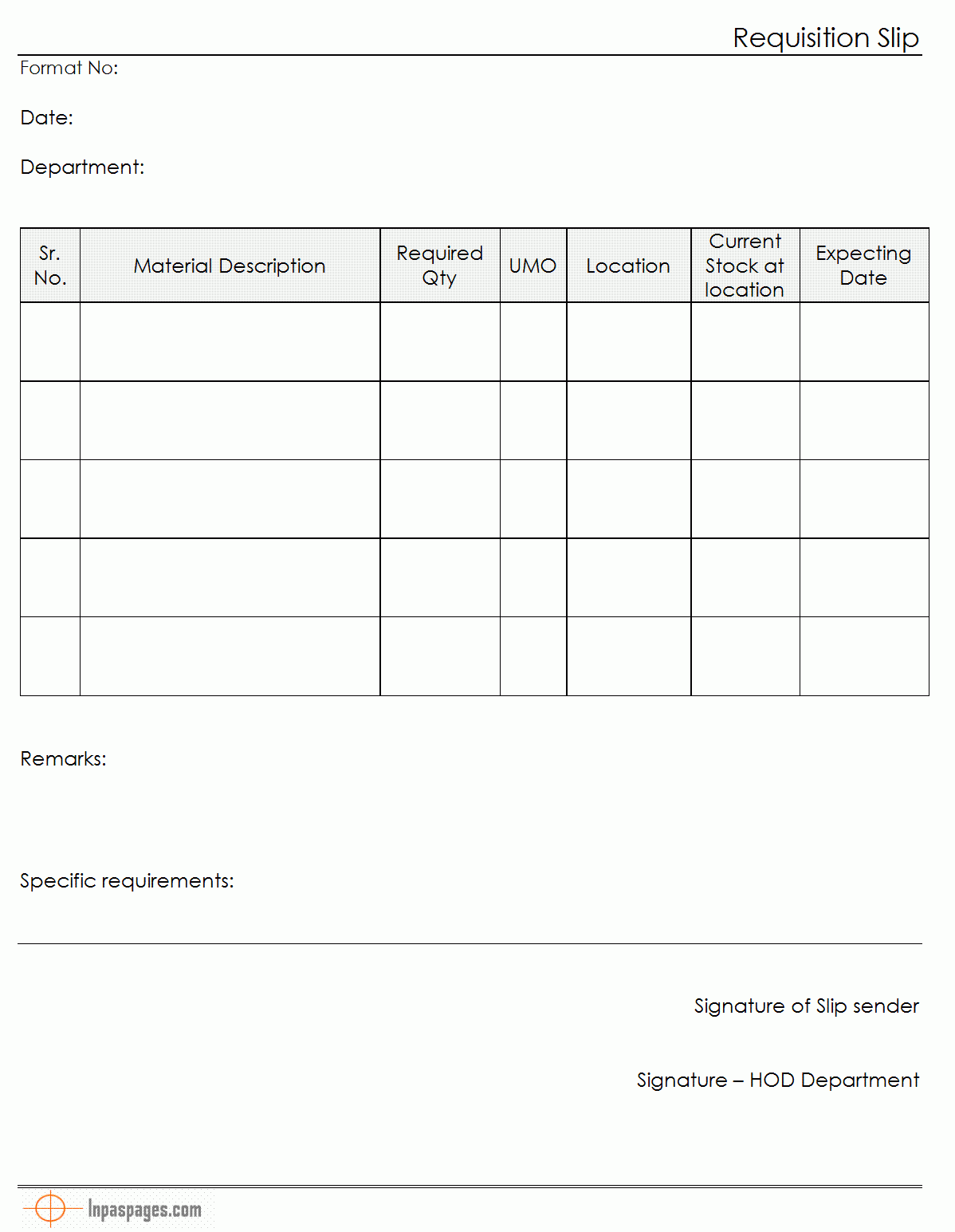 Material Issue Slip Template