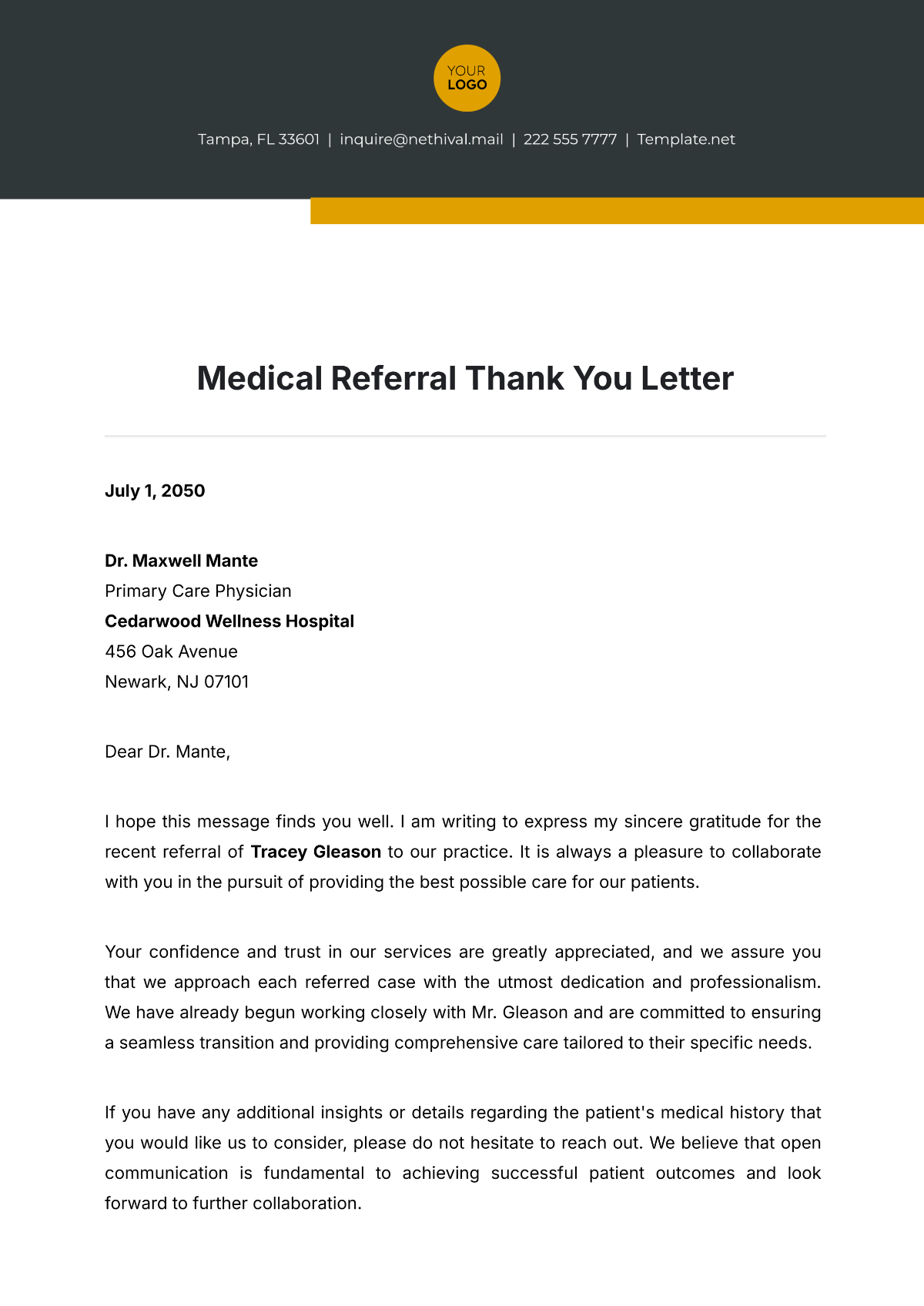 Free Medical Referral Thank You Letter Template To Edit Online