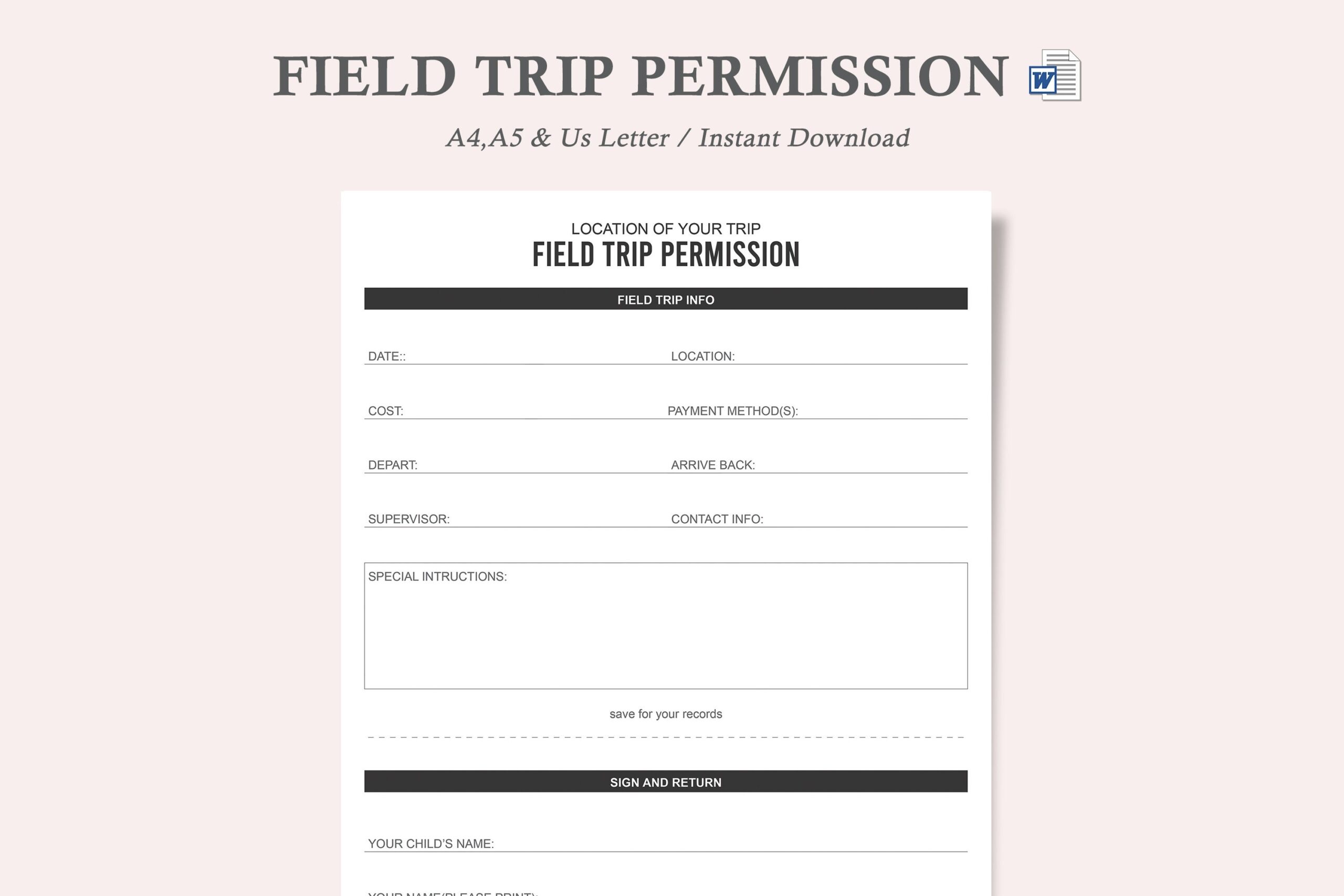 Field Trip Form field Trip Template field Trip Permission Slip Template blank Field Trip Permission Slip Etsy