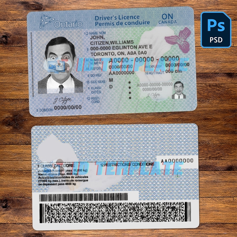 Ontario Driving License PSD Template Driving License Template