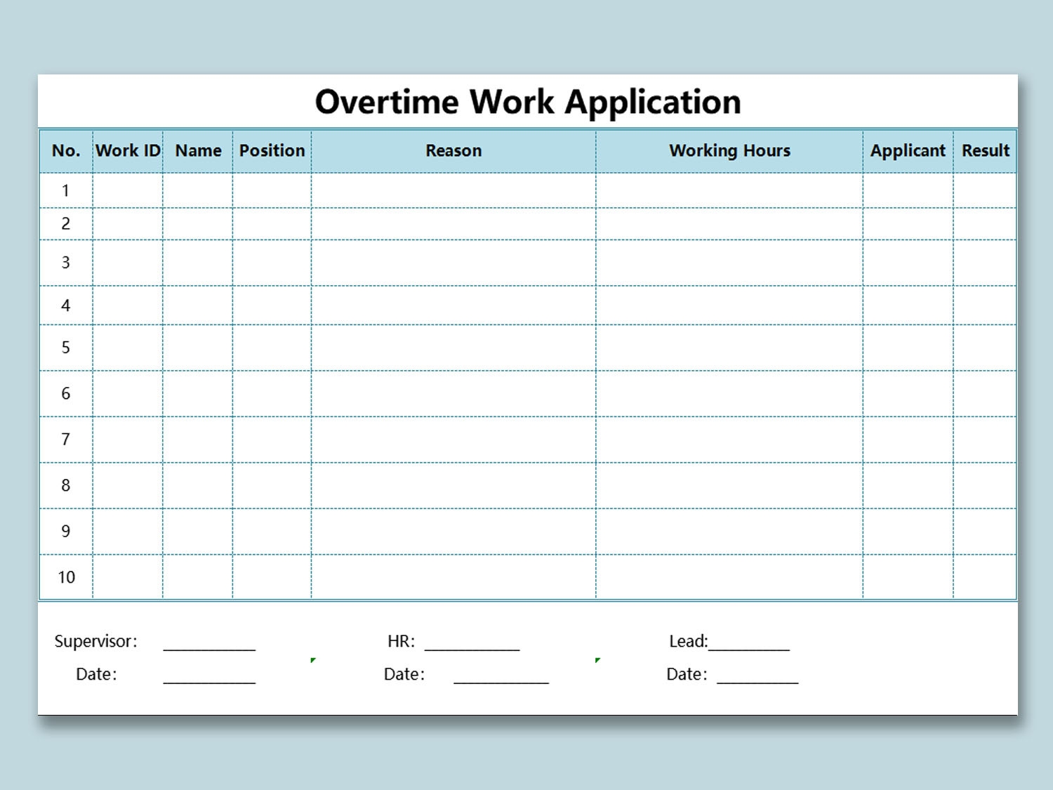 EXCEL Of Overtime Work Application xlsx WPS Free Templates