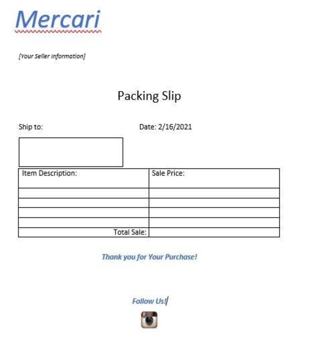Packing Slip Template Mercari