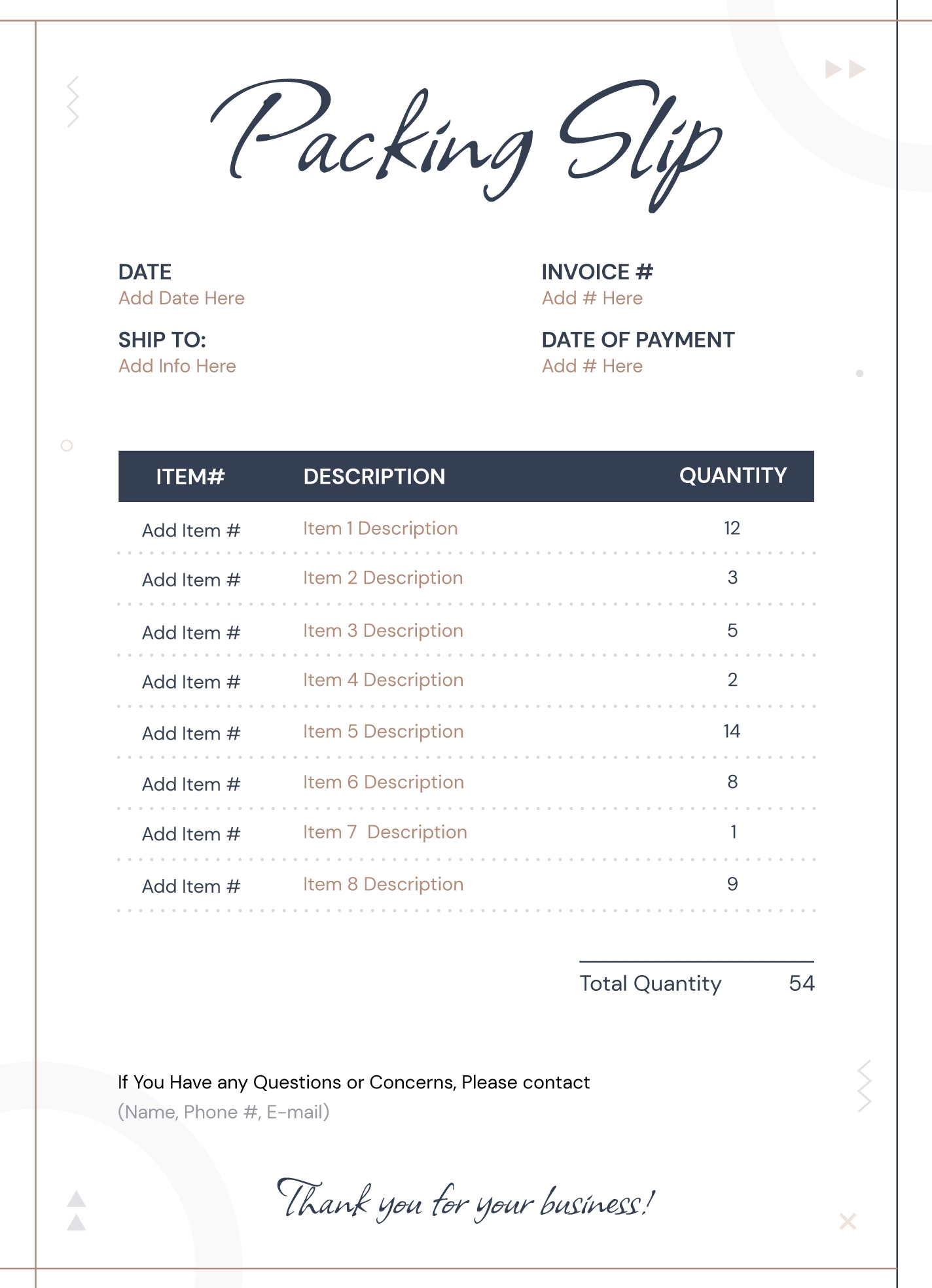 Packing Slip Template Printable