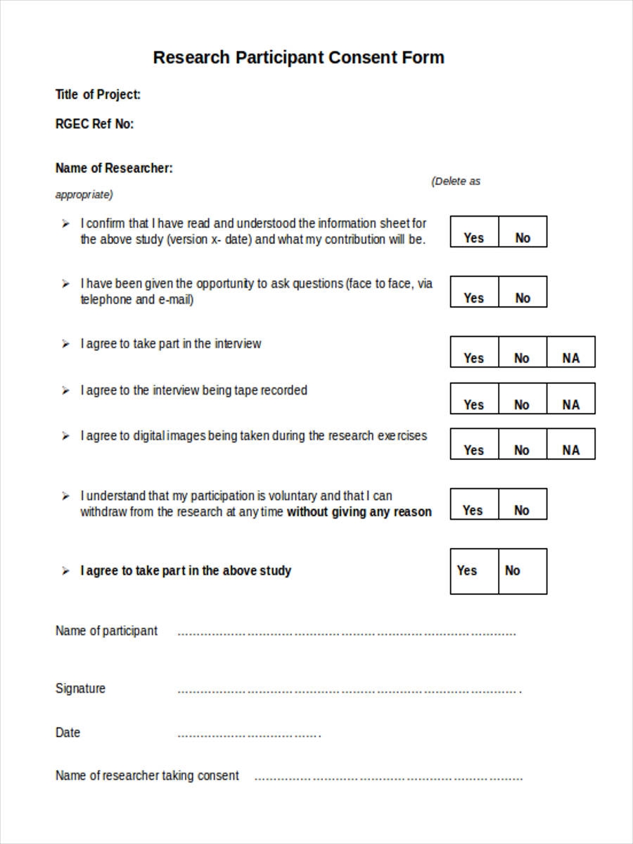 FREE 7 Participant Consent Forms In MS Word PDF