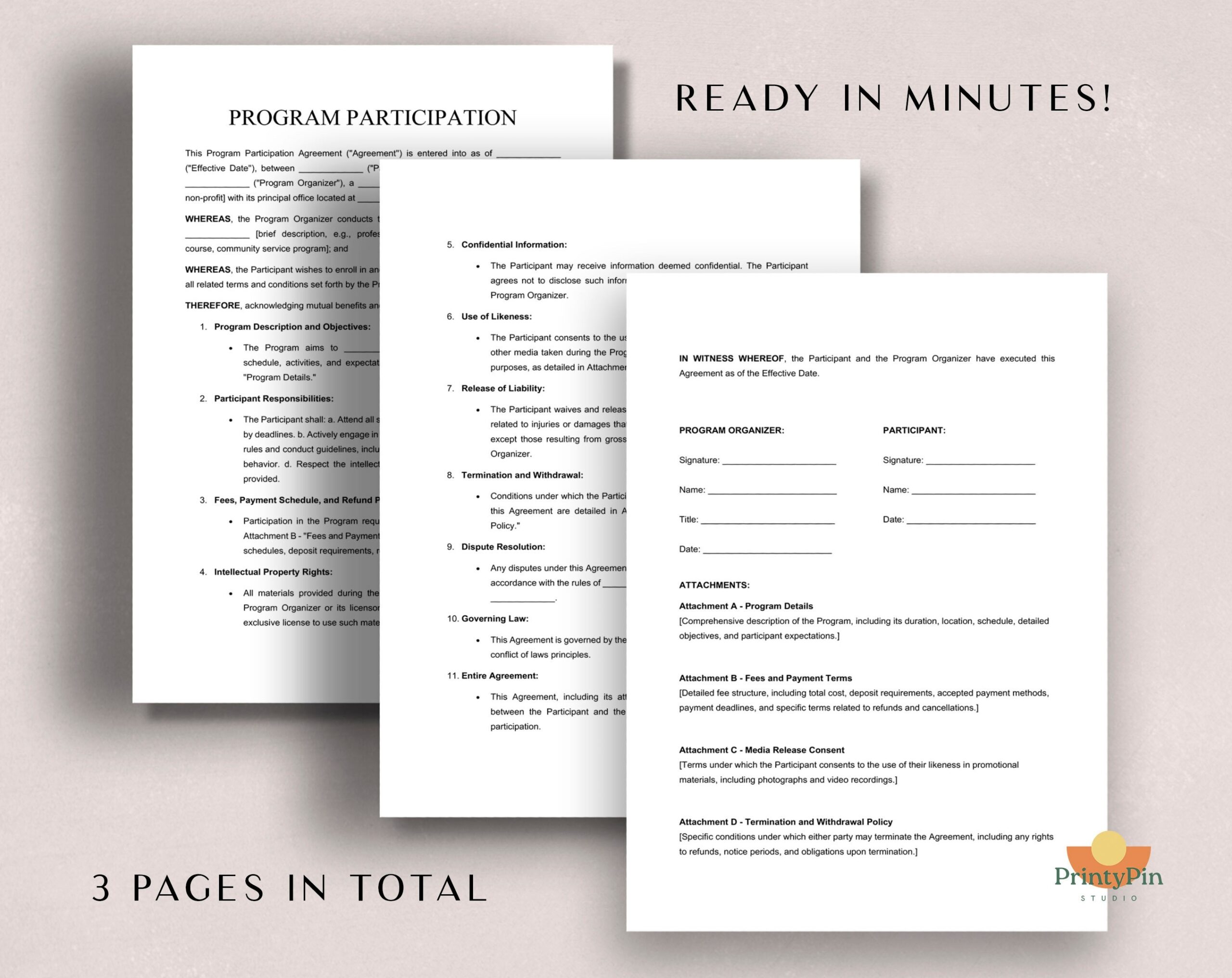 Program Participation Agreement Template Instant Download Editable Word U0026 PDF Course Enrollment Workshop Contracts Etsy