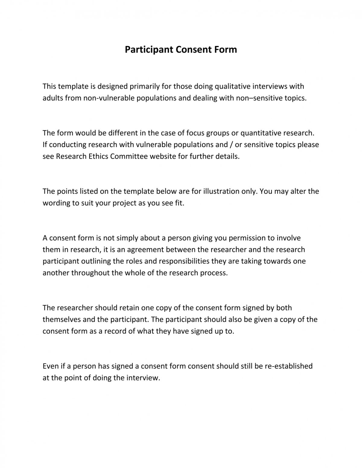 Participant Consent Form Template Etsy