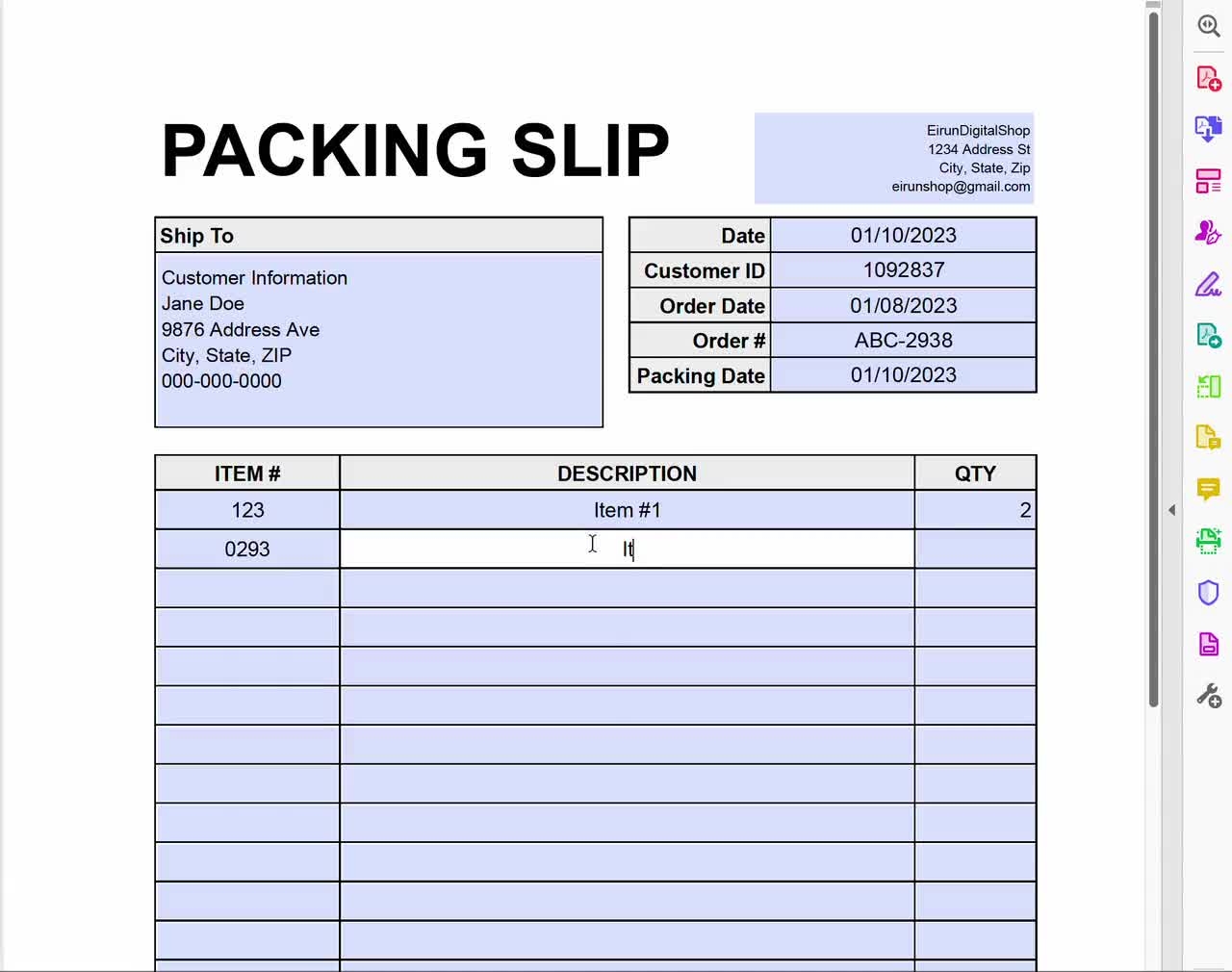 Packing Slip Template Editable PDF Word Googledocs
