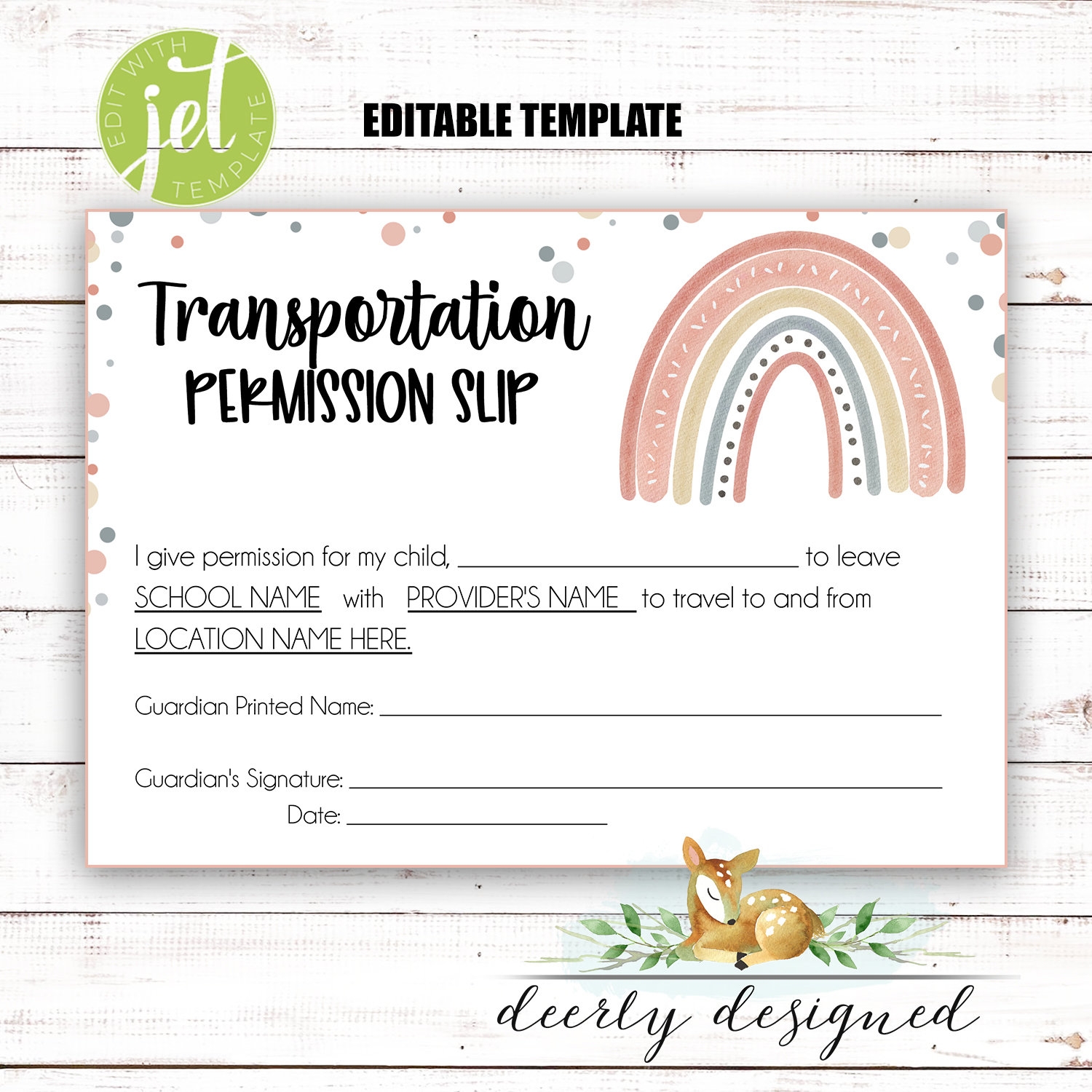 EDITABLE Transportation Permission Slip School Daycare Editable Template Parent Permission Slip Rainbow Boho Field Trip Form Etsy