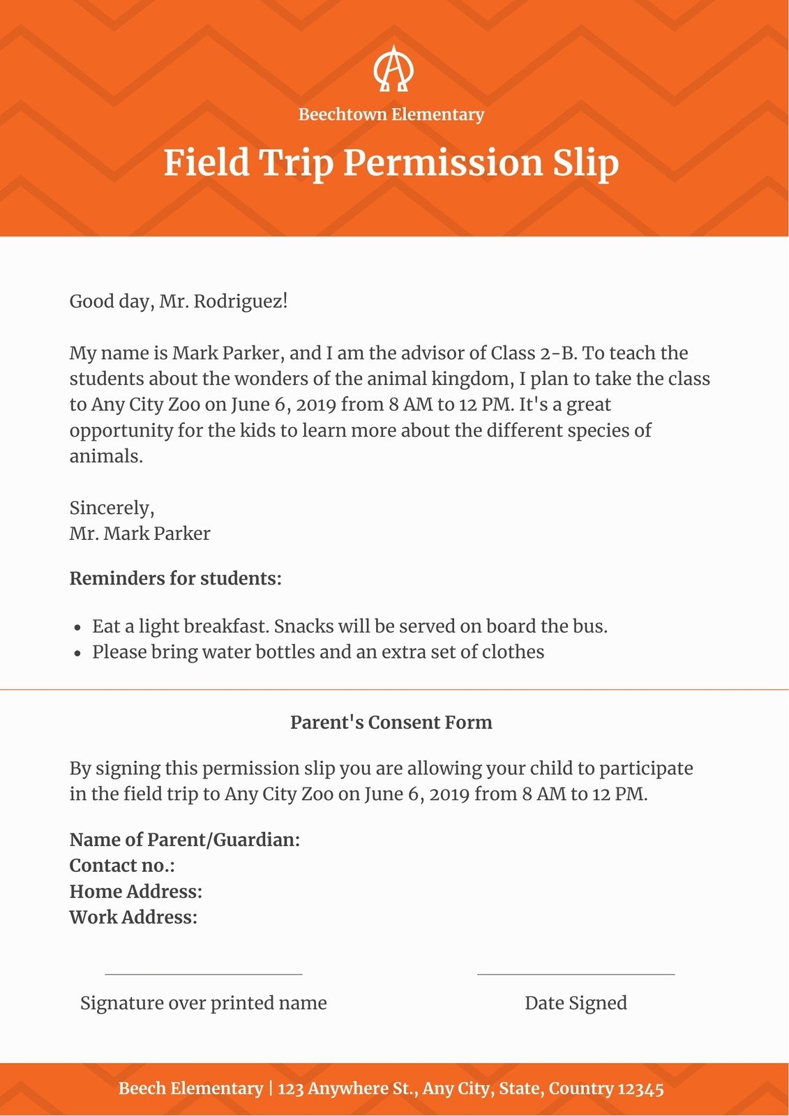 Free Printable Customizable Permission Slip Letter Templates Canva