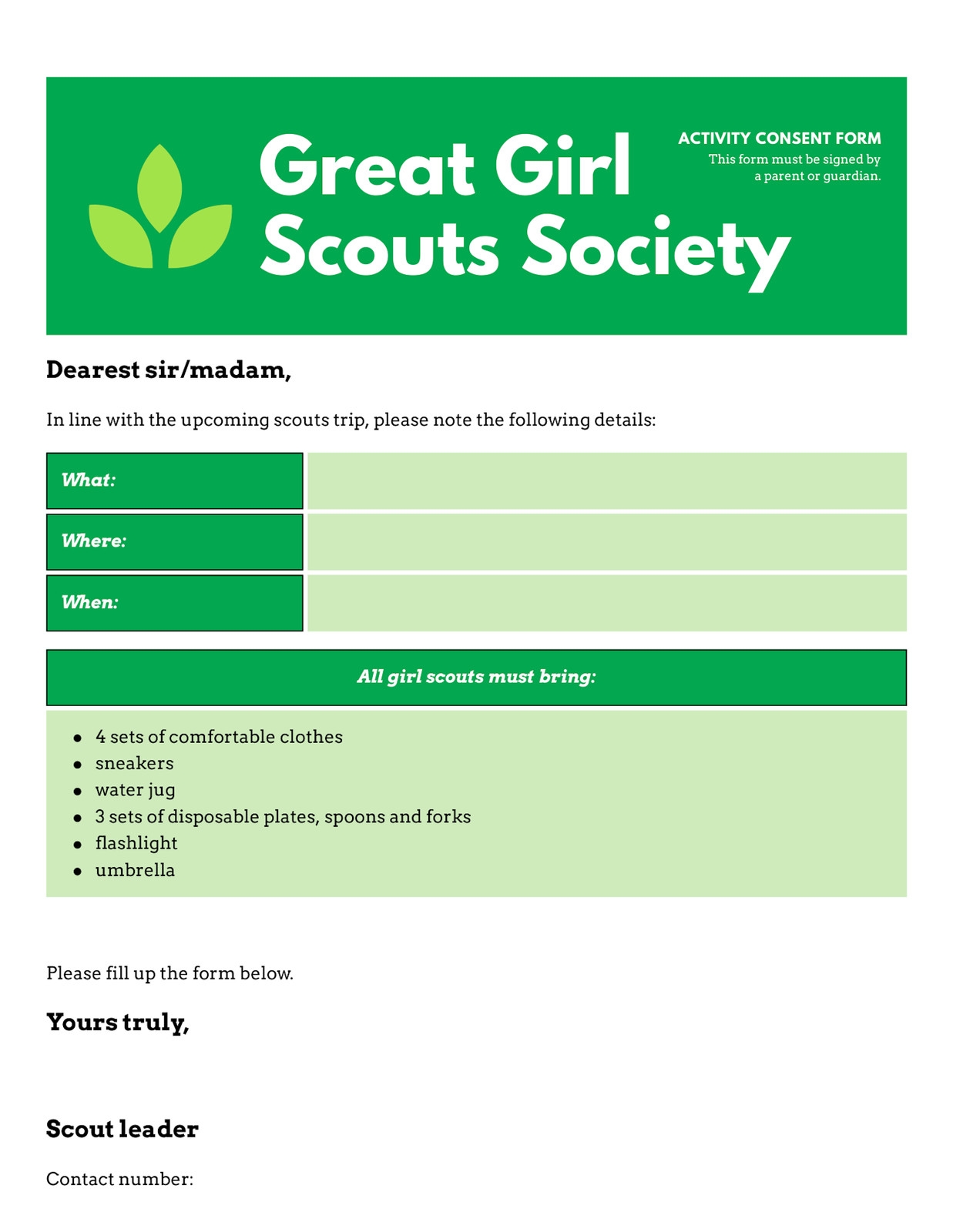 With our free Permission Slip Template For Girl Scouts, you can easily customize the details of your event, such as date, time, location, and any special instructions. This template is designed to be user-friendly and editable, making it convenient for troop leaders and parents alike.