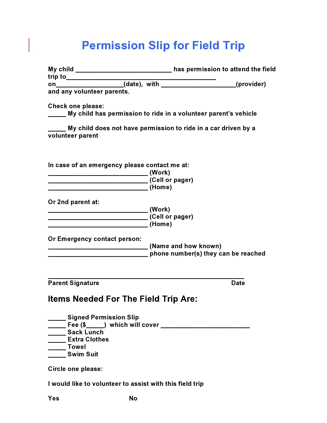30 Permission Slip Templates Field Trip Scouts Generic