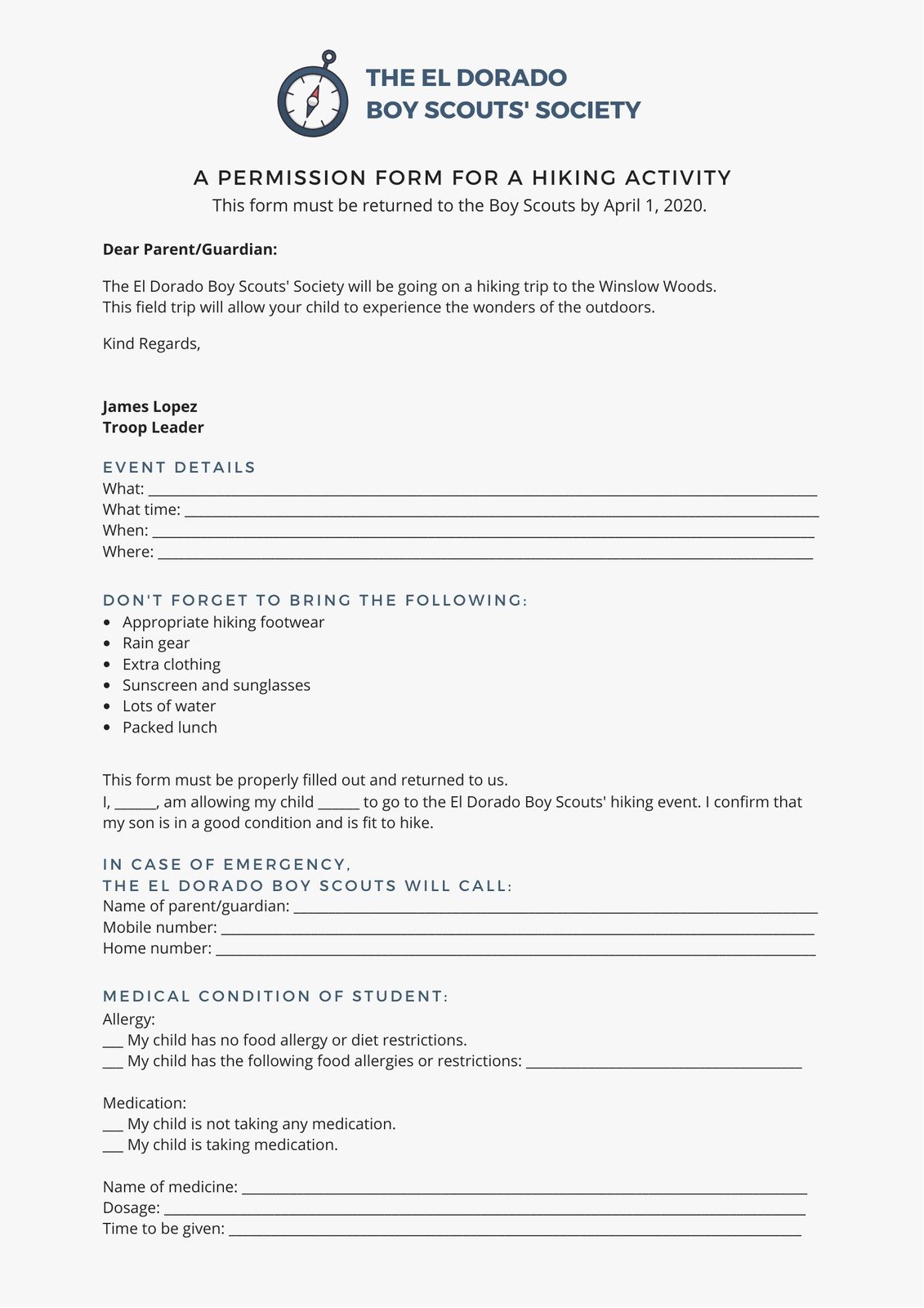 Free Printable Customizable Permission Slip Letter Templates Canva