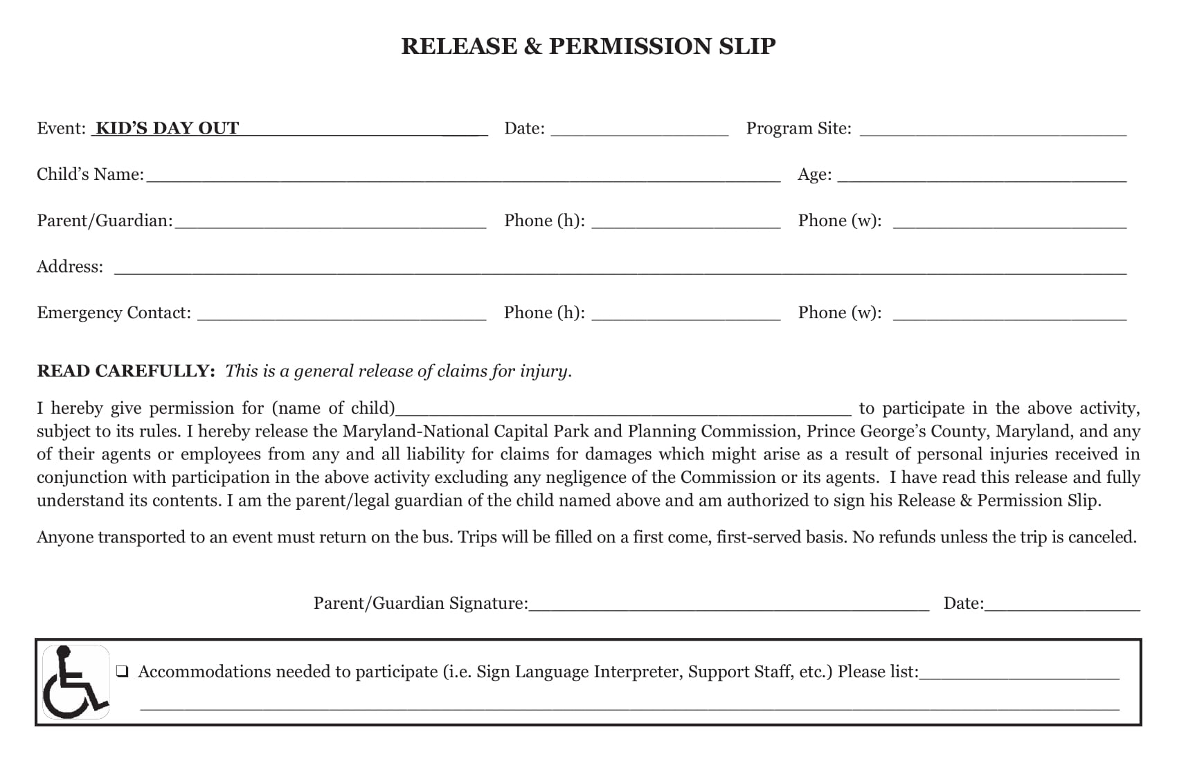 Permission Slip Template Retreat
