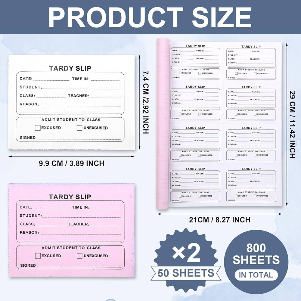 Engrowtic 800 Pcs Tardy Slip Book With Carbonless Duplicates 3 5 X 4 3 Inch Tardy Slips Per Book Form Register Copy Books For Student Late Arrivals