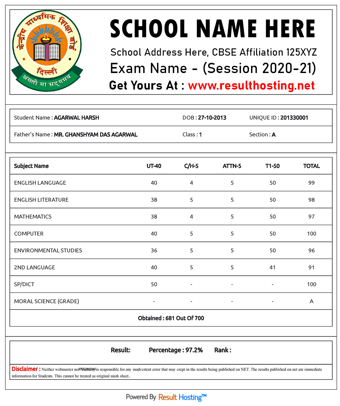 Customize Your Result Slip Template