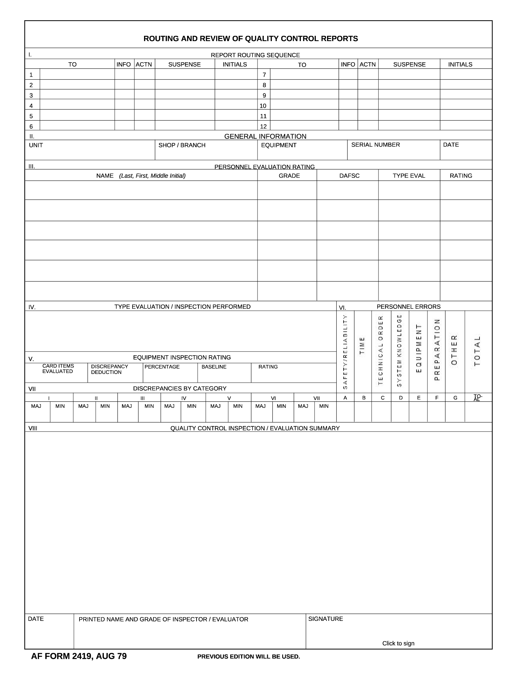 AF Form 2419 Routing And Review Of Quality Control Reports