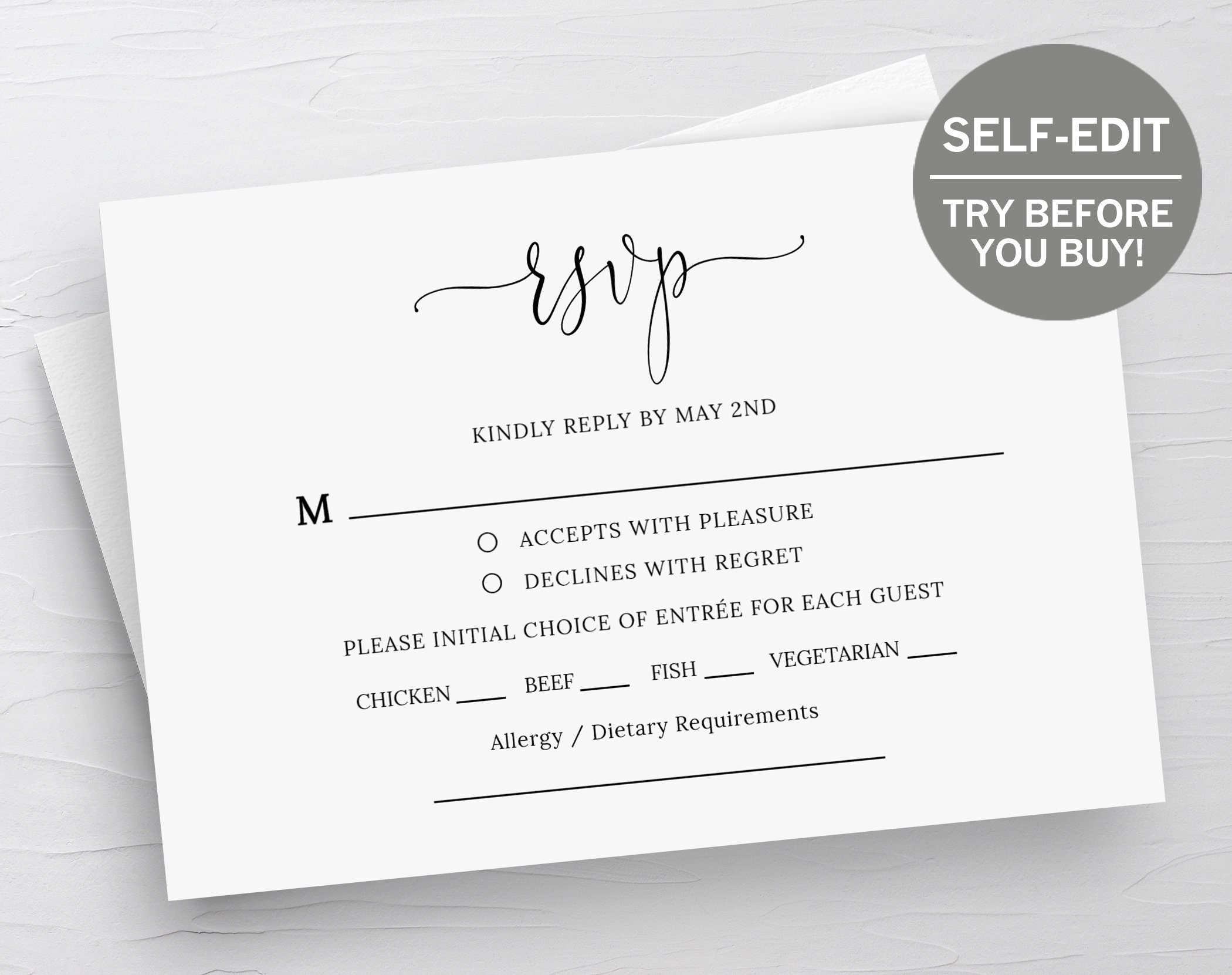 RSVP Card Template Wedding RSVP Cards Response Cards RSVP Template Instant Download Wedding Printable Templett Editable Minimalist Etsy