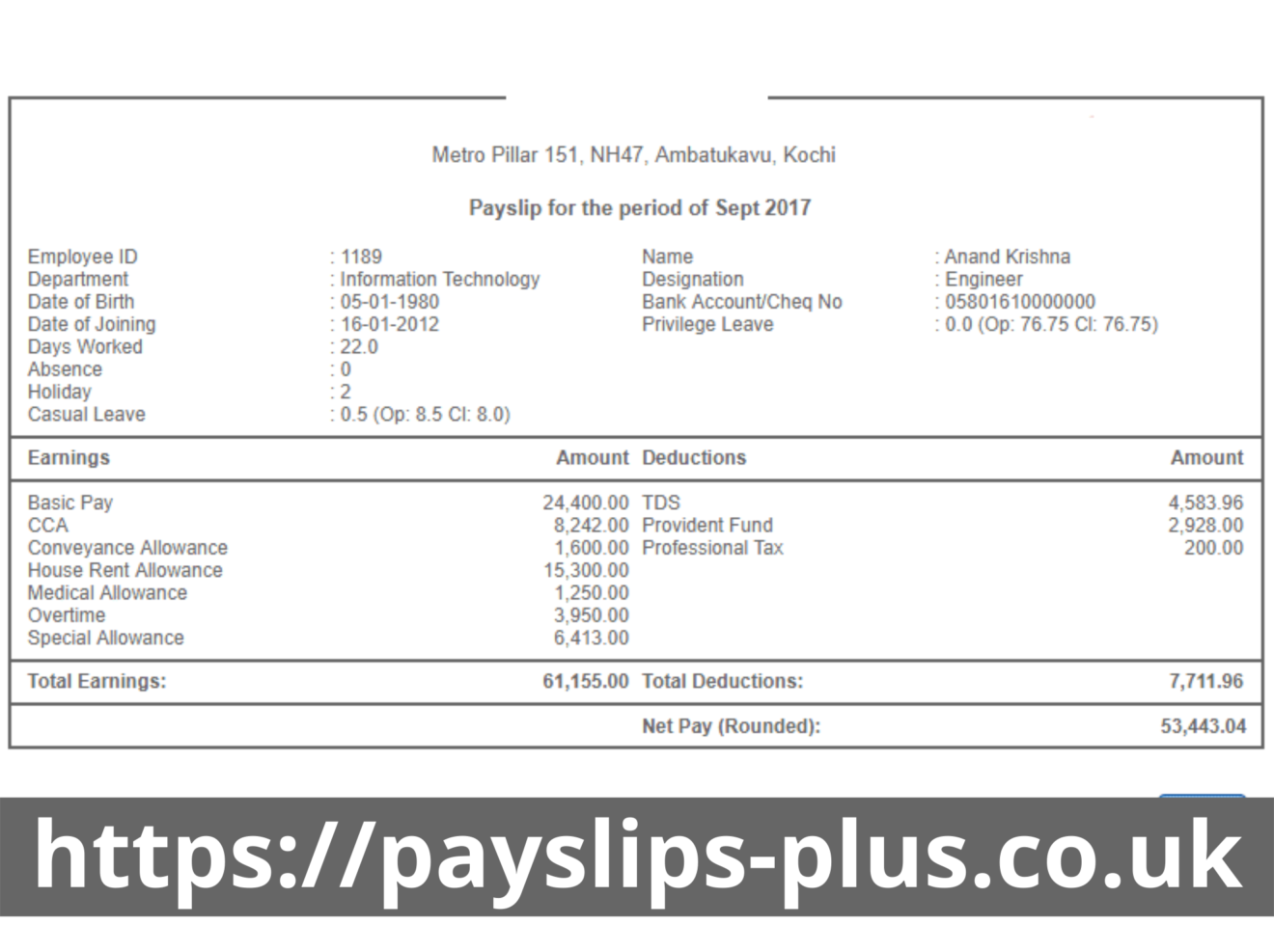 Salary Slip Template And P60 Template