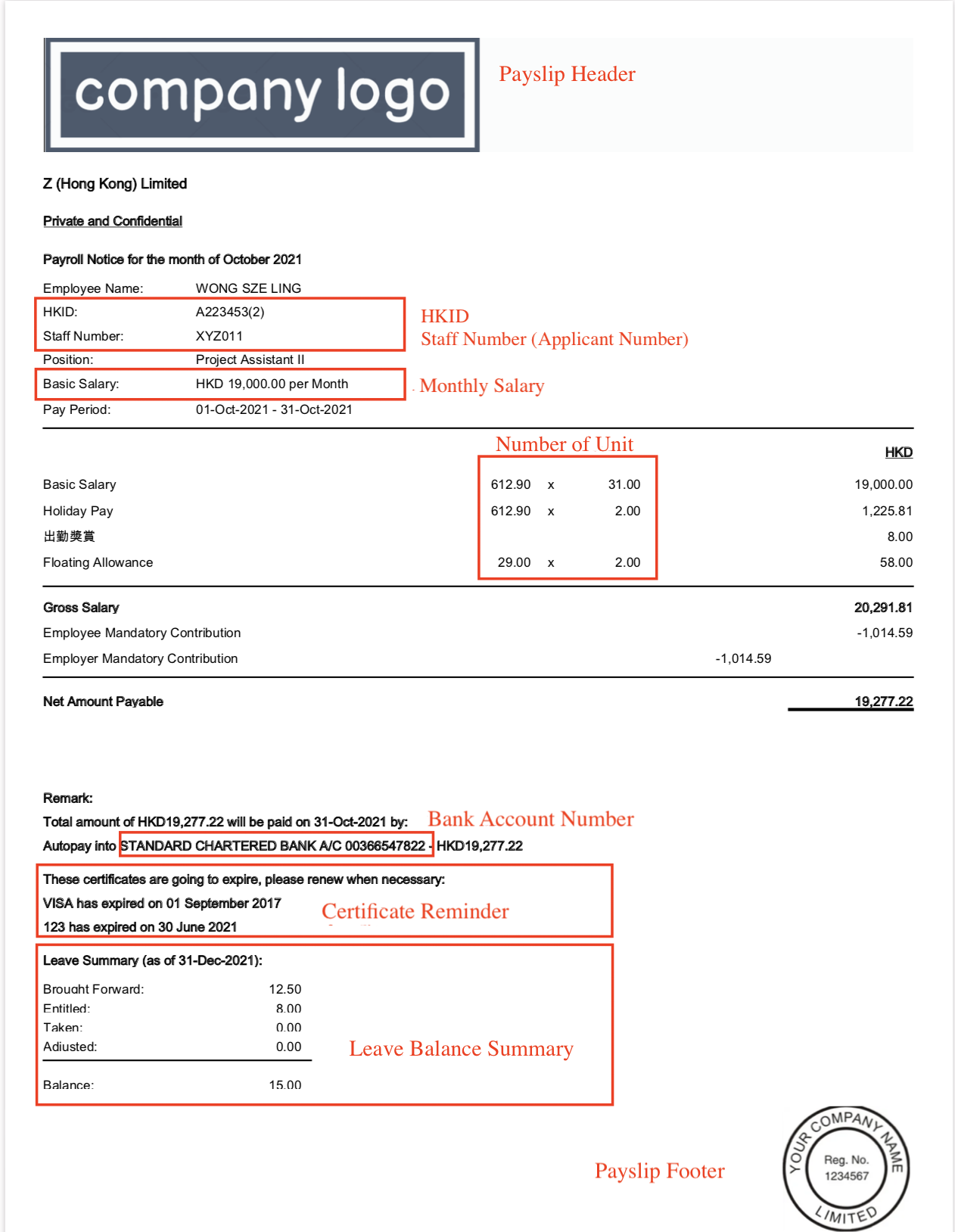Salary Slip Template Hong Kong