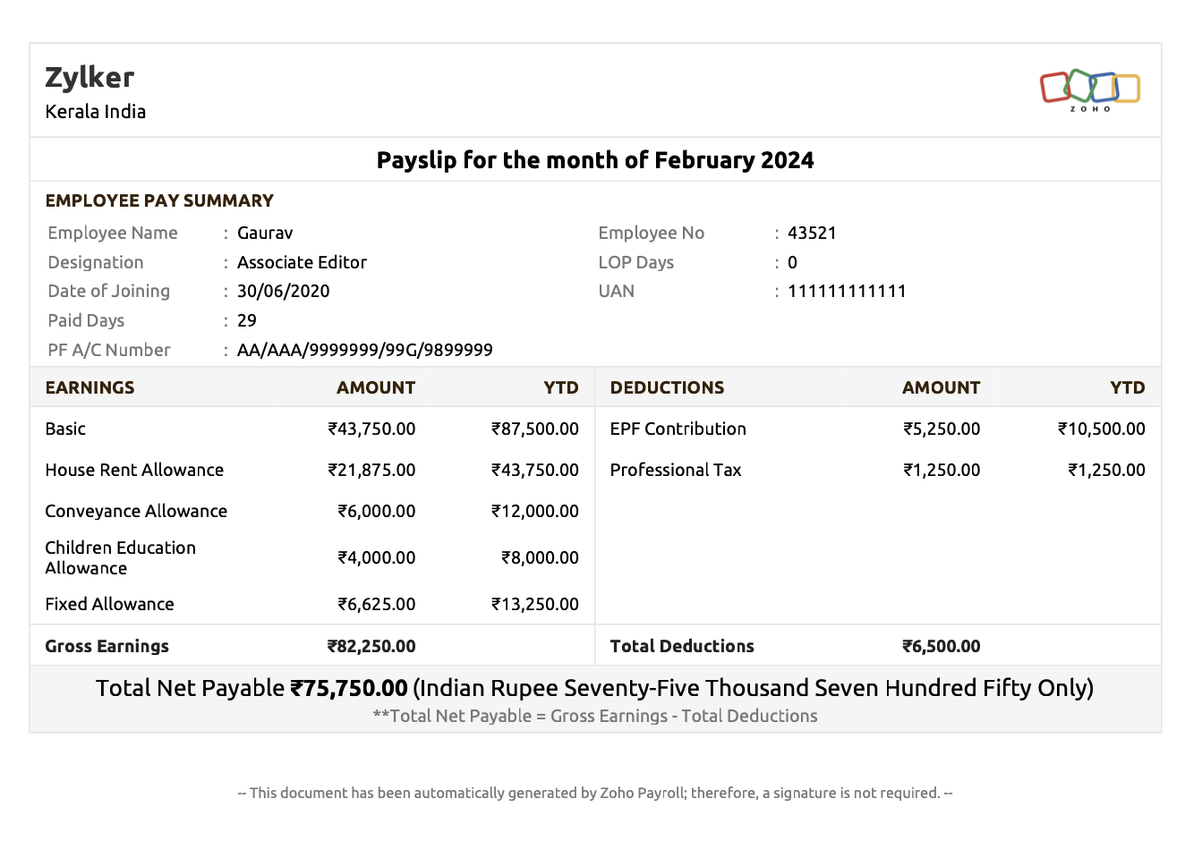 What Is Salary Slip Or Payslip Format U0026 Components Zoho Payroll