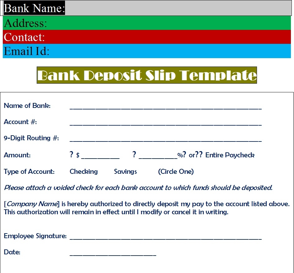 Sample Deposit Slip Template