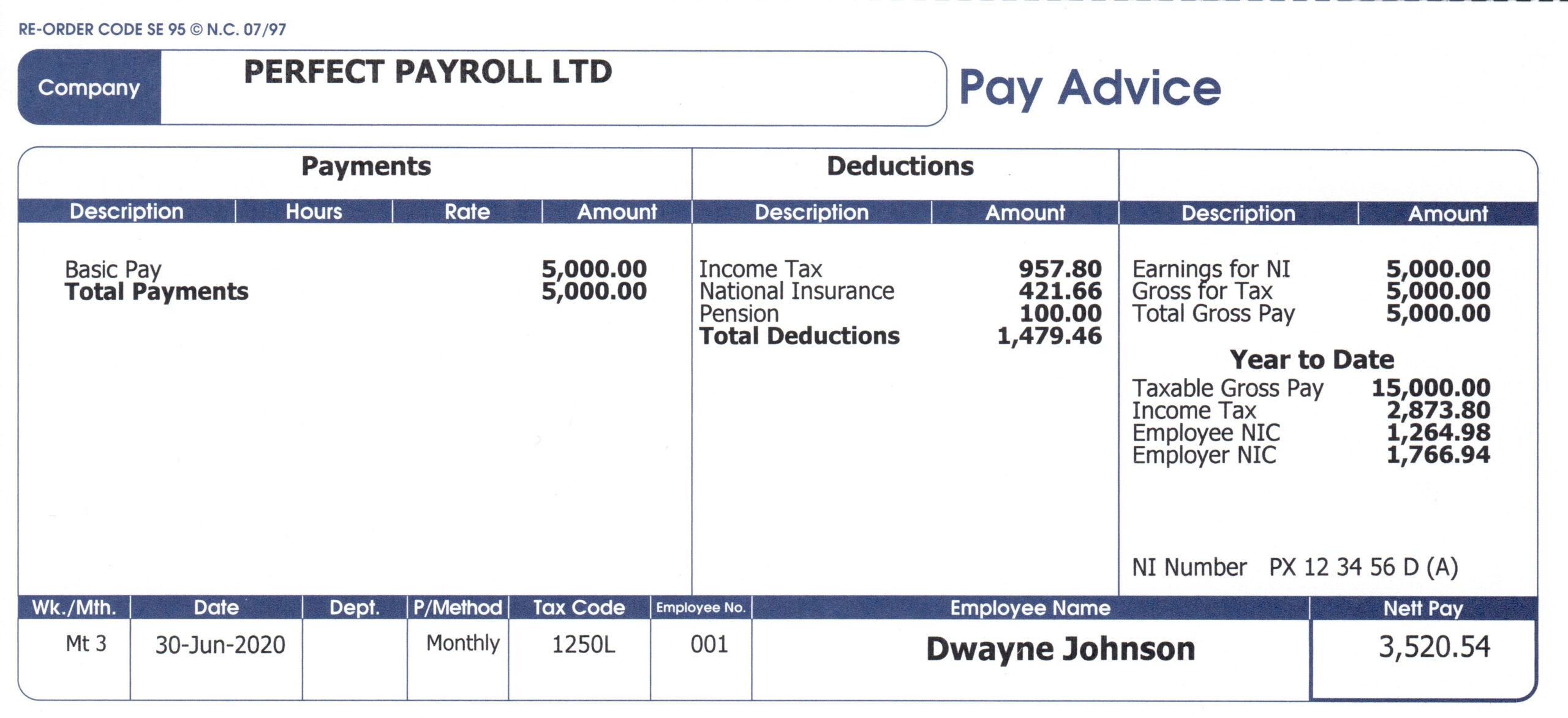 Sample Wage Slip Template Uk