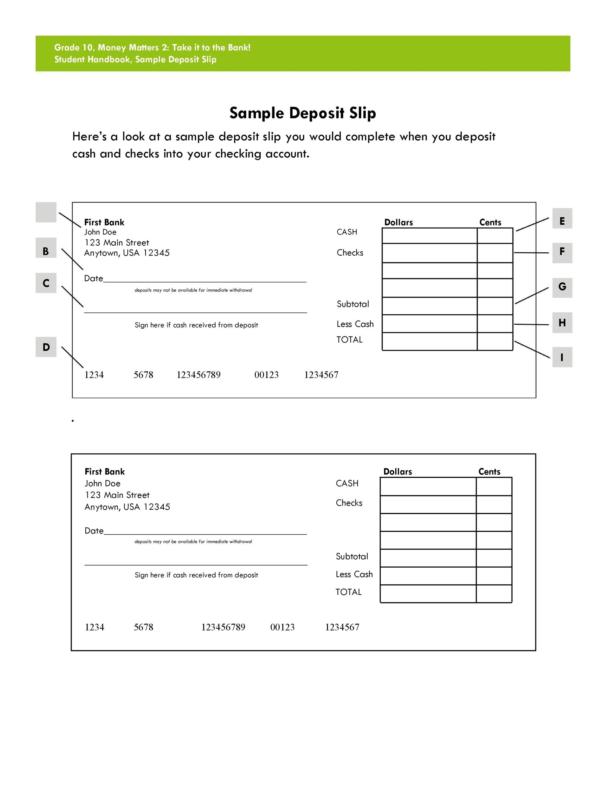 Free Printable Bank Deposit Slip Examples Filled Out PDF