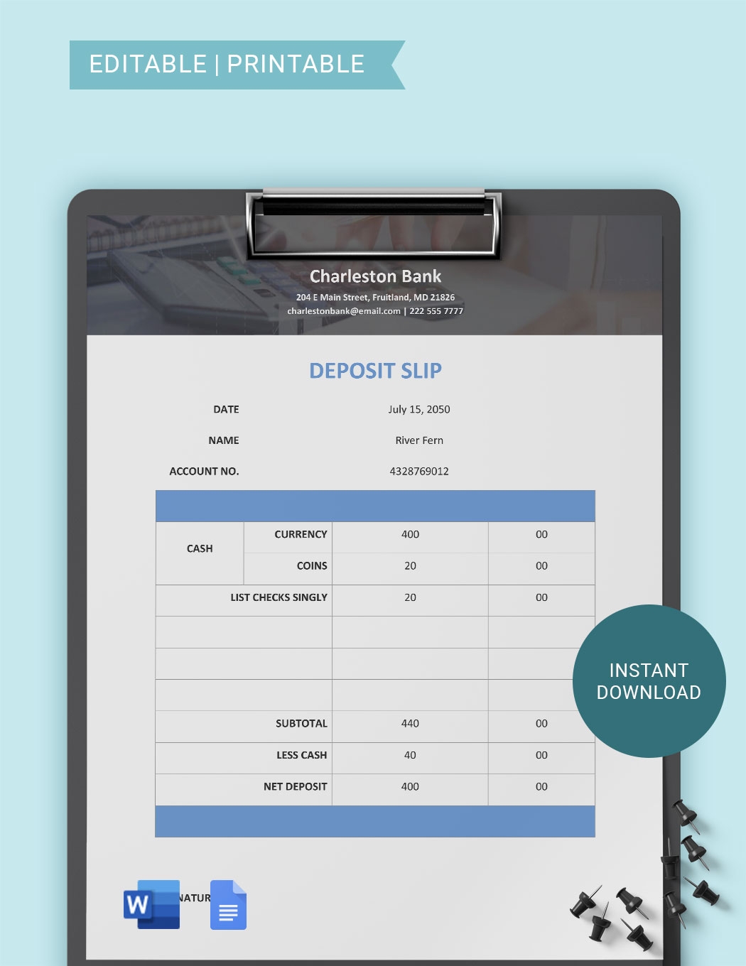PRINTABLE Bank Deposit Slips Wallet Size Instant Download PDF File Etsy