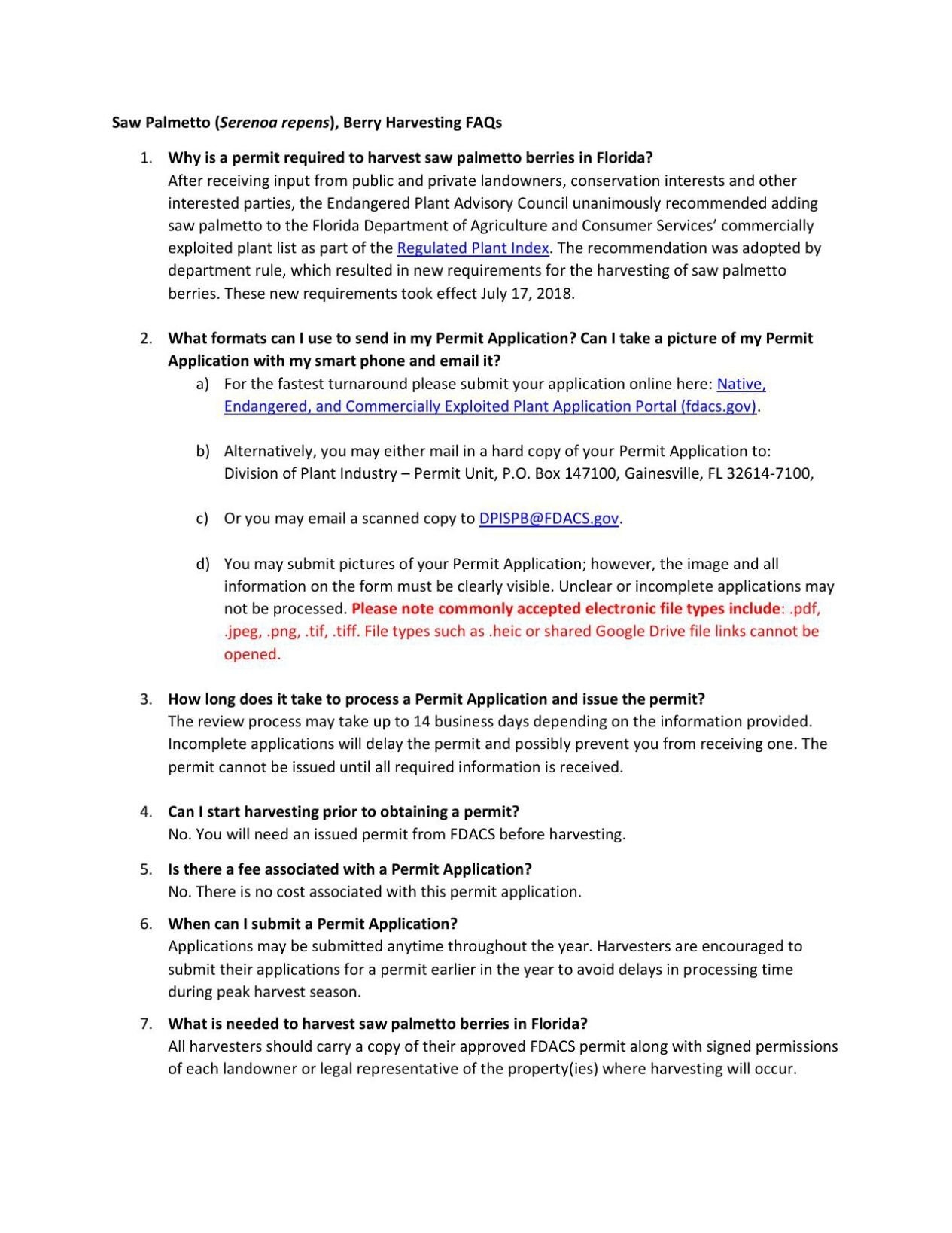 EXTENSION NOTES Permit Required For Those Who Sell Saw Palmetto Berries