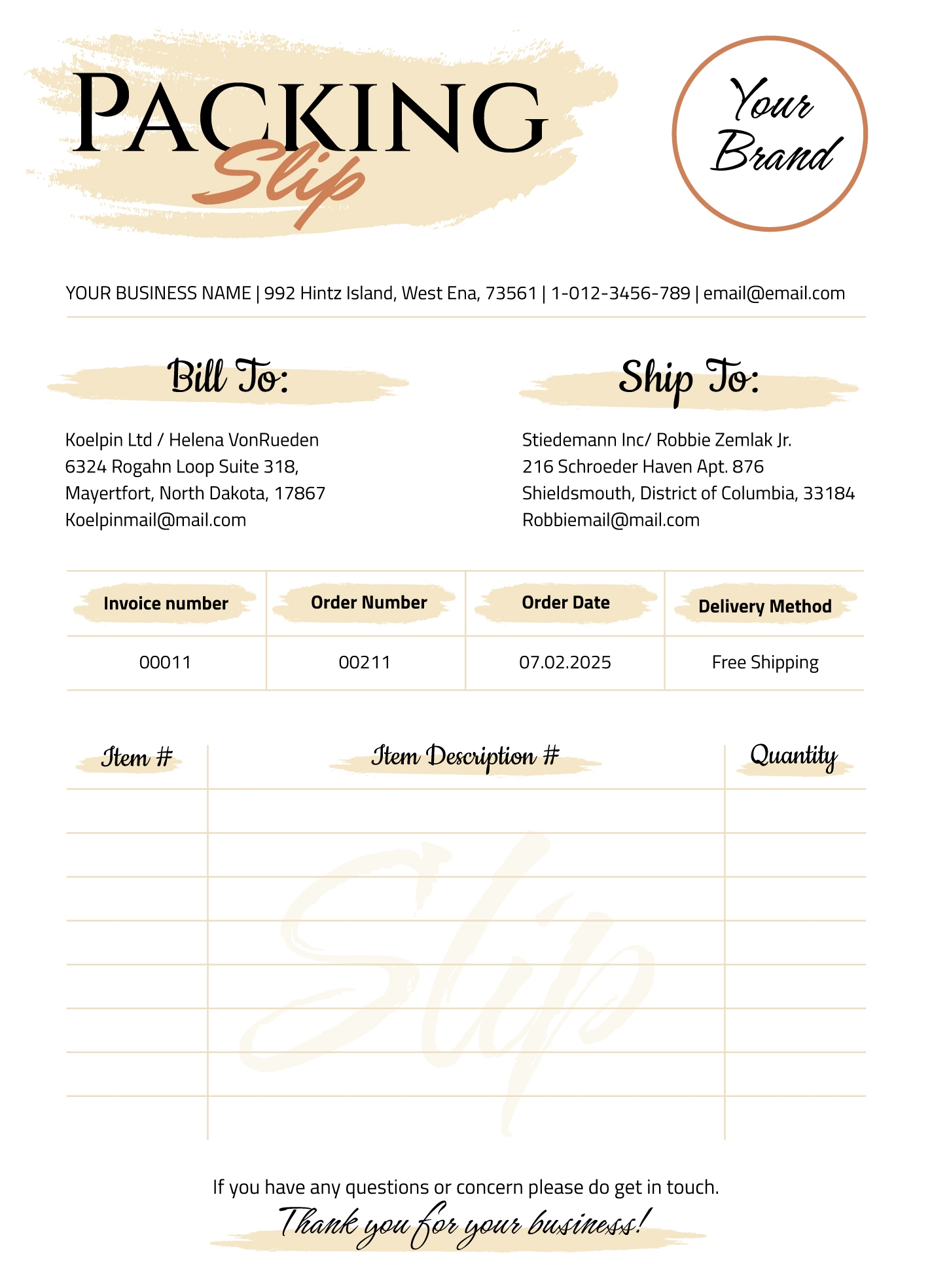 Shipping Easy Packing Slip Template
