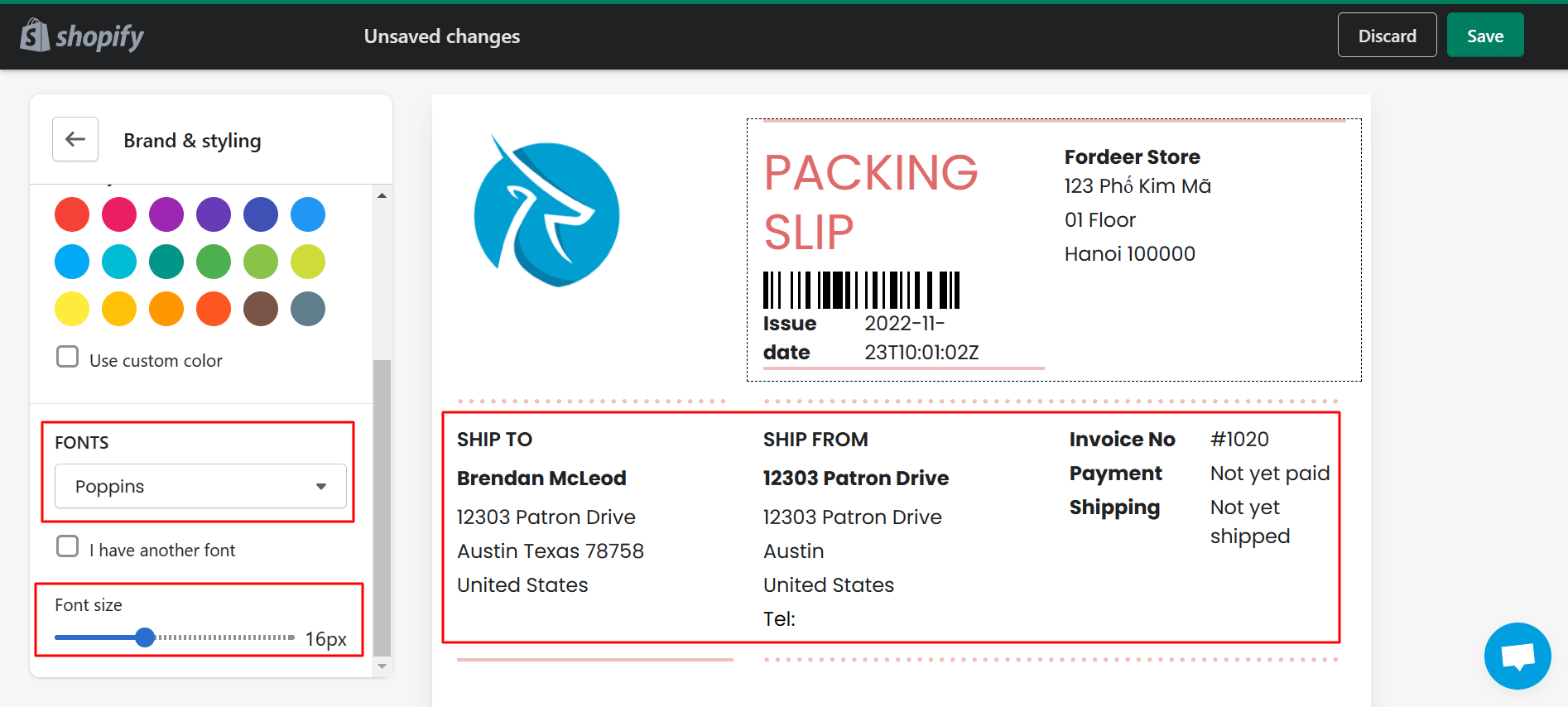 Shopify Customize Packing Slip Template