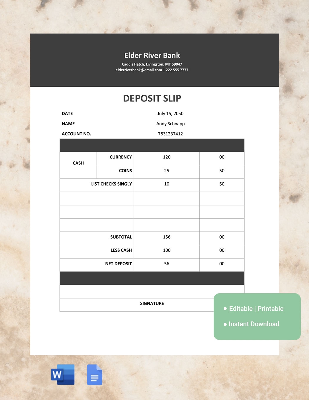 Whether you’re a local resident or just passing through, having a deposit slip handy can save you time and hassle when it comes to depositing money into your account. Our template is easy to use and can be tailored to fit your specific banking needs.