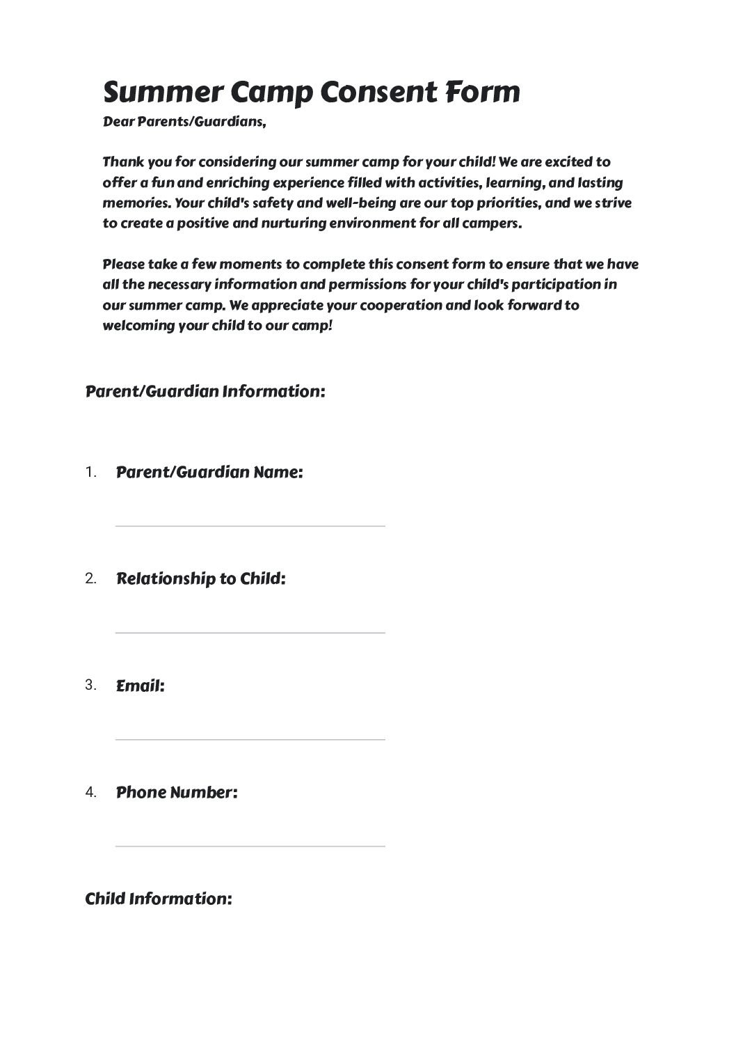 Free Summer Camp Consent Form Template In Google Forms