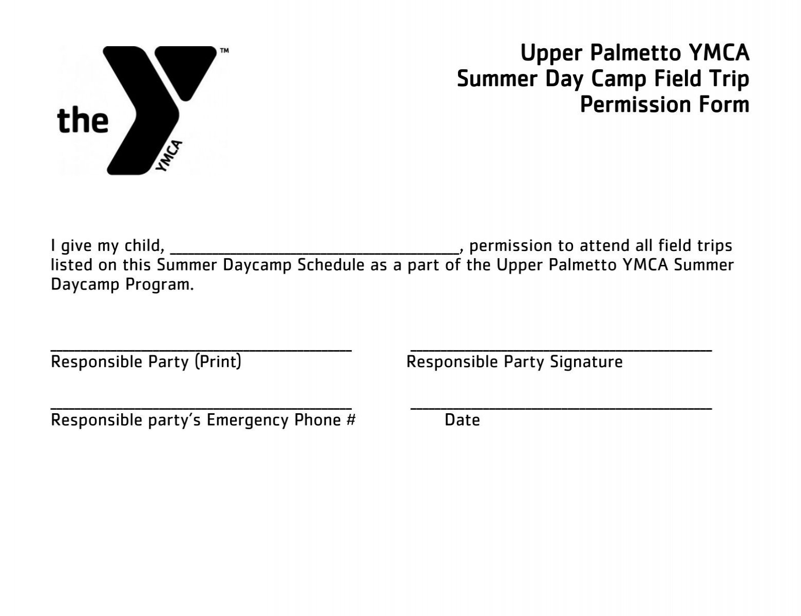Upper Palmetto YMCA Summer Day Camp Field Trip Permission Form