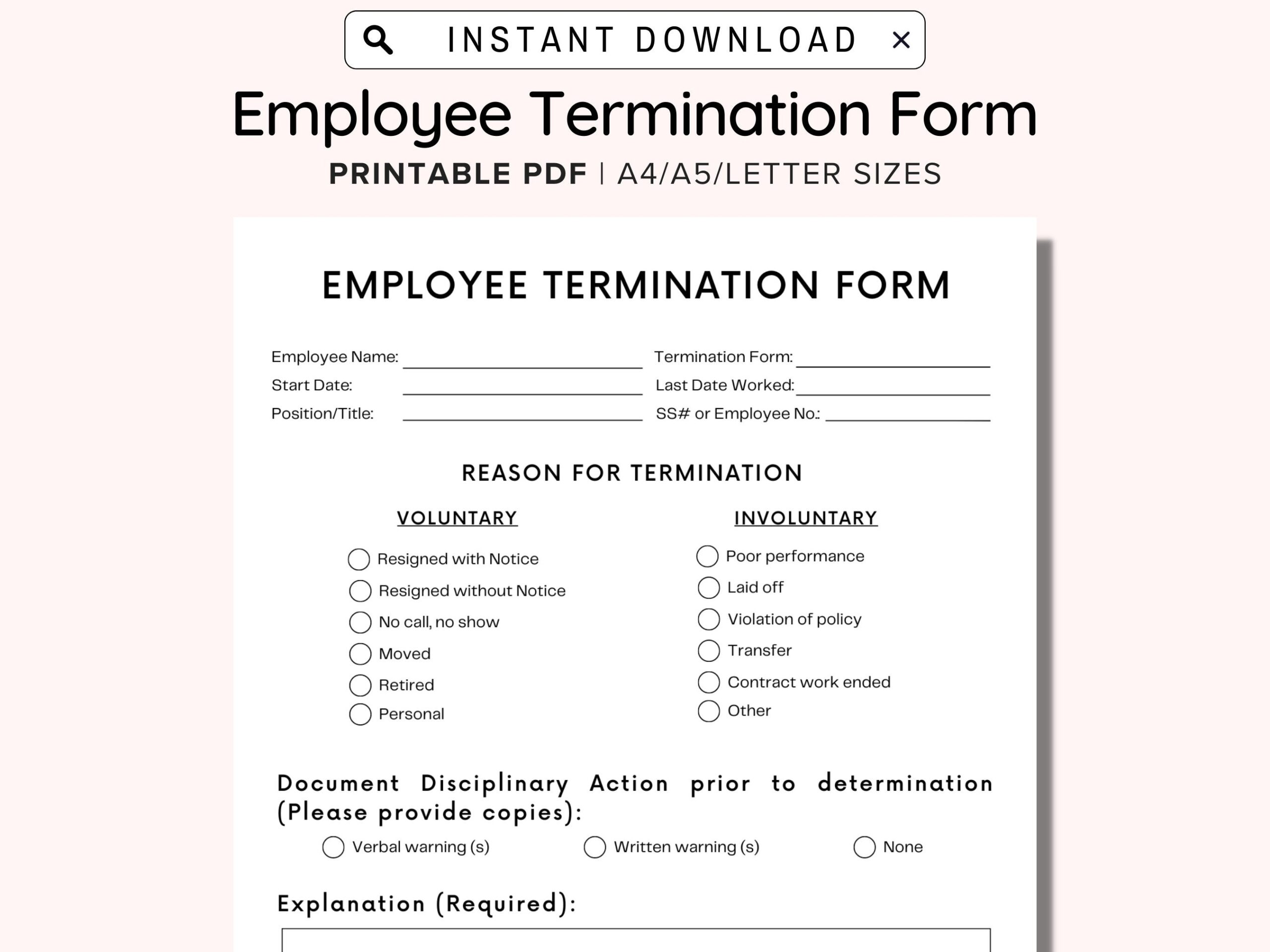 Employee Termination Form Printable Employee Termination Form HR Terminate Employee Form PDF Etsy