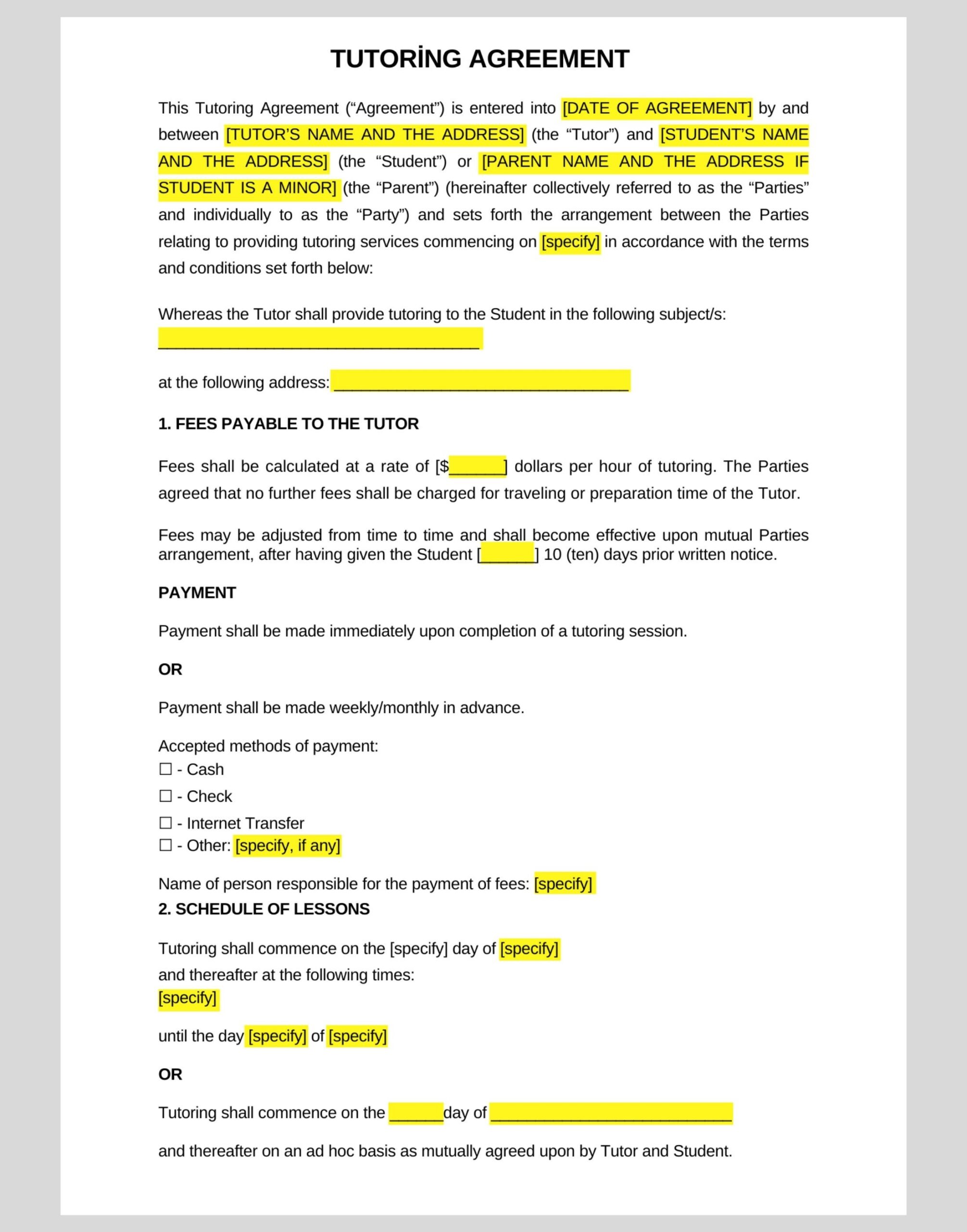 Free Tutoring Contract PDF Word EForms