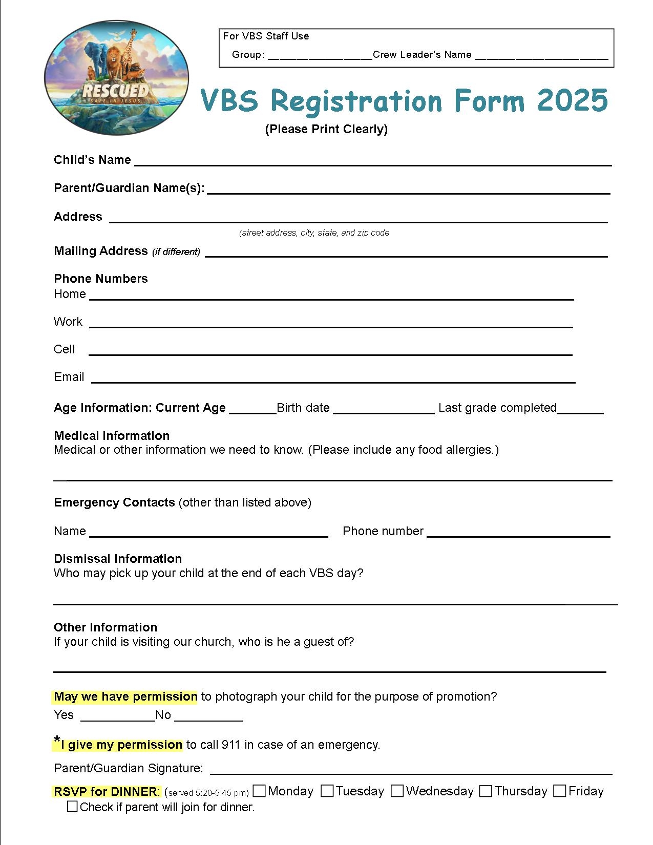Custom Church Camp VBS Event Registration Editable Instant Digital