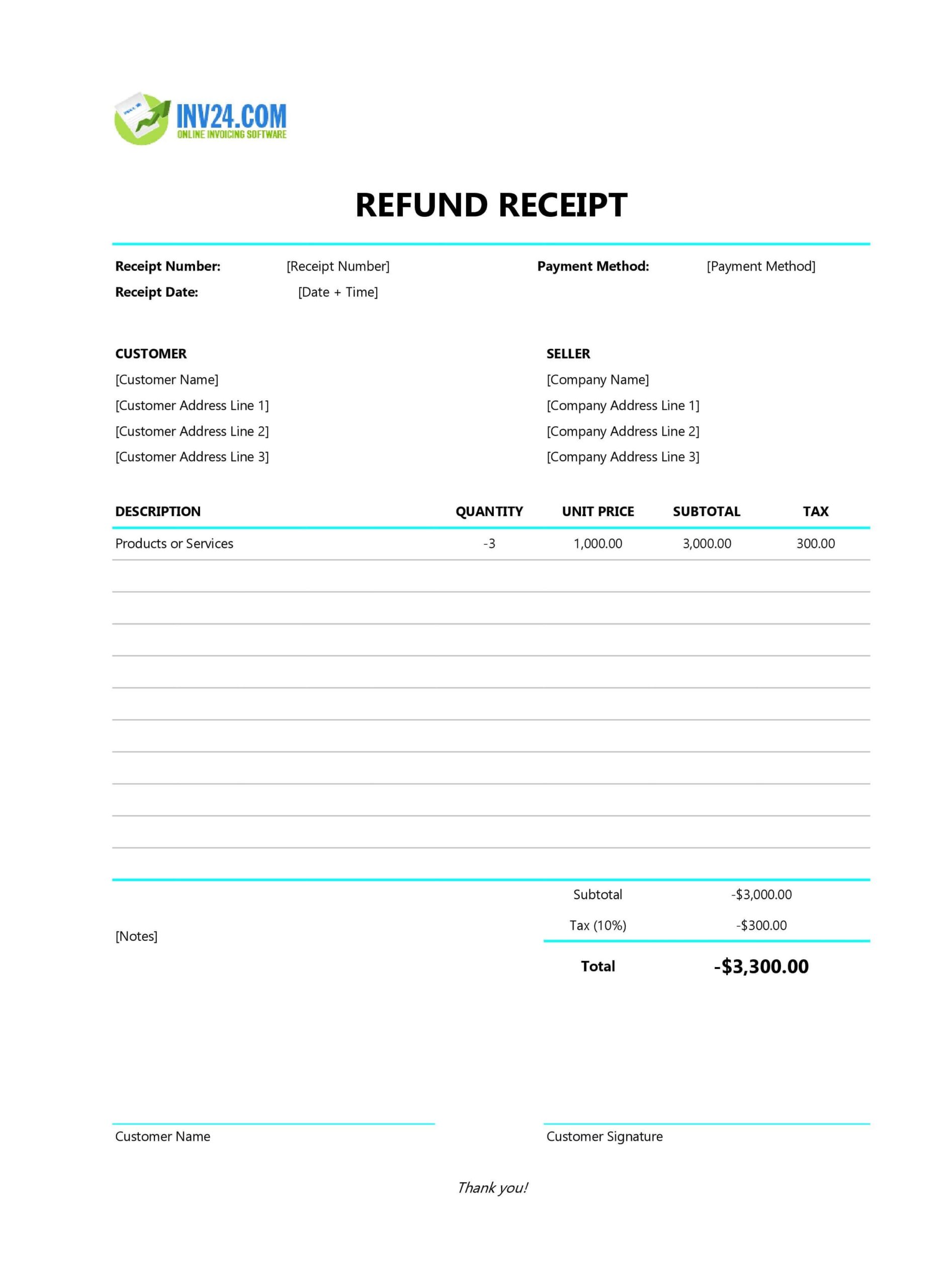 Refund Receipt Template Excel Google Sheets