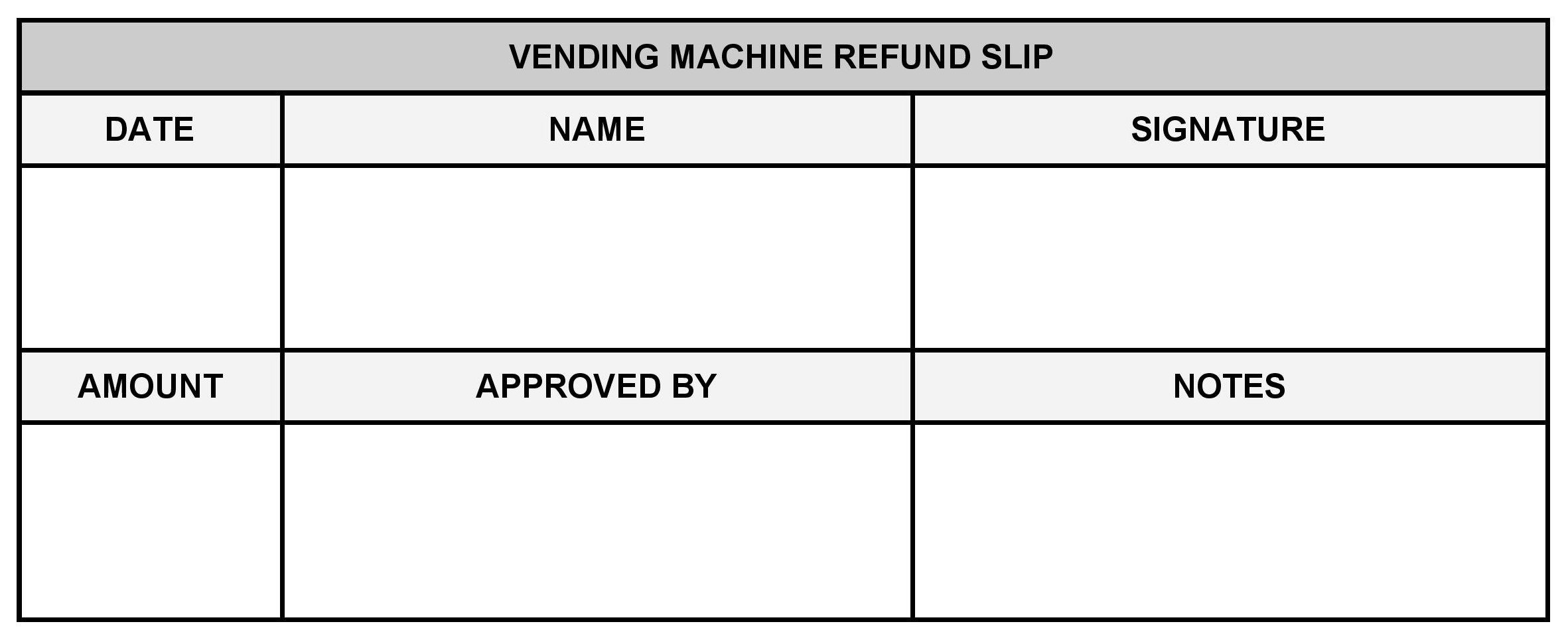 Vending Refund Slip Template