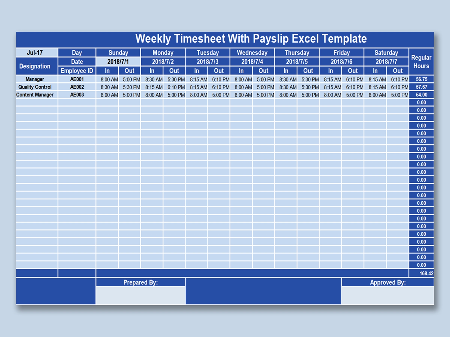 EXCEL Of Weekly Timesheet With Payslip xlsx WPS Free Templates