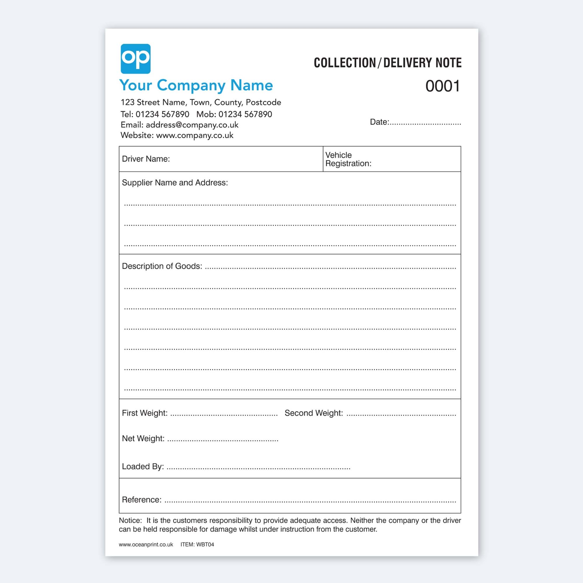 Weight Slip Template
