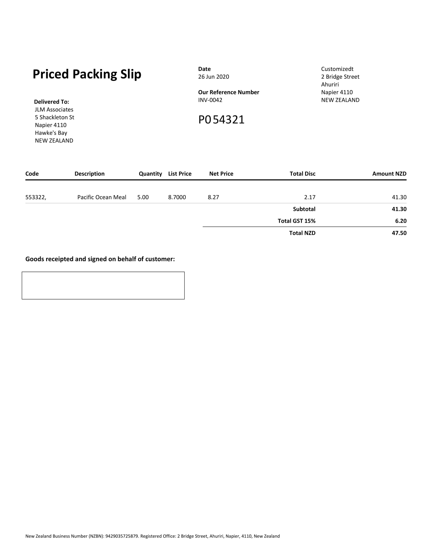 Xero Foodstuffs Priced Packing Slip No Charge To