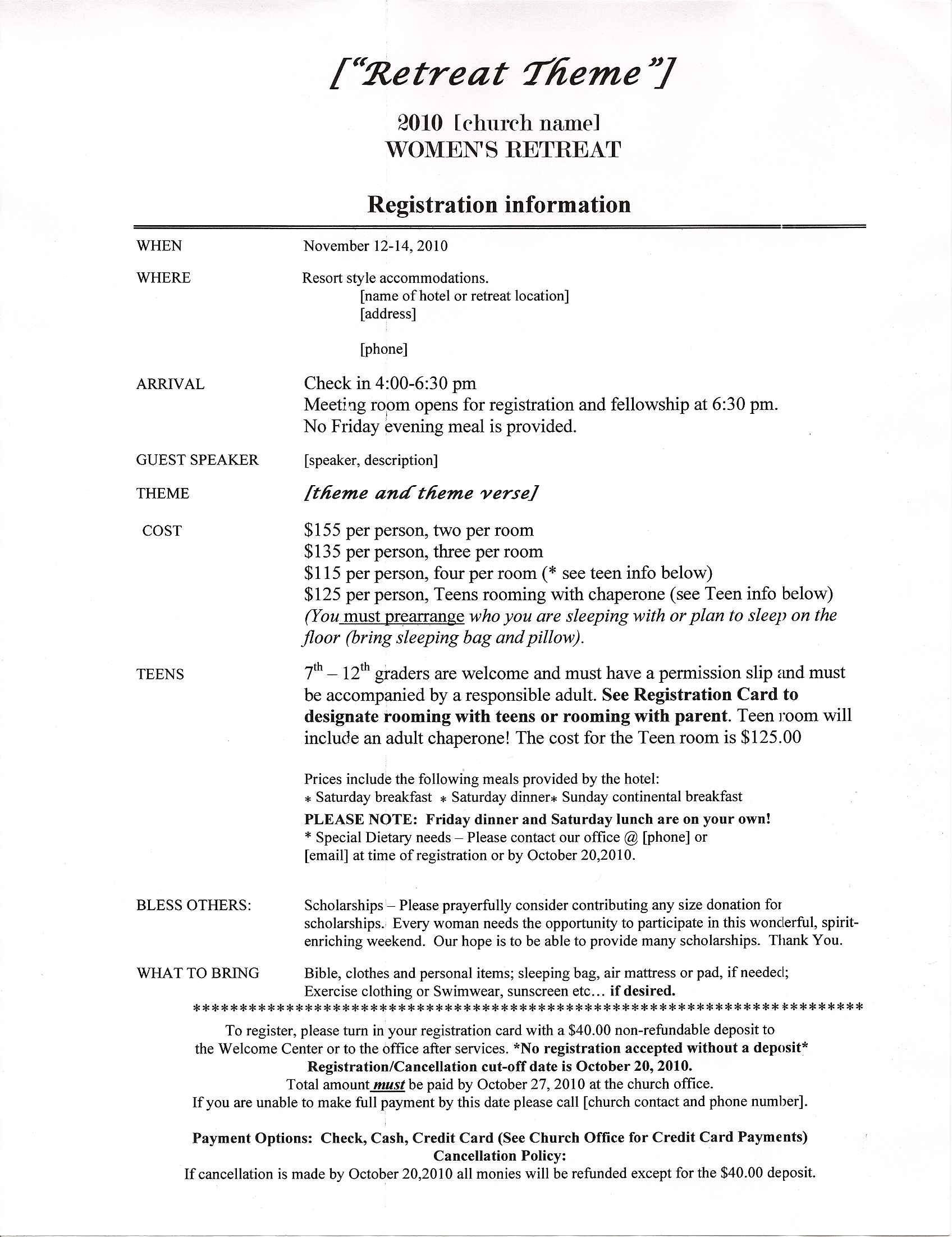Downloadable Forms Retreat in a Bag